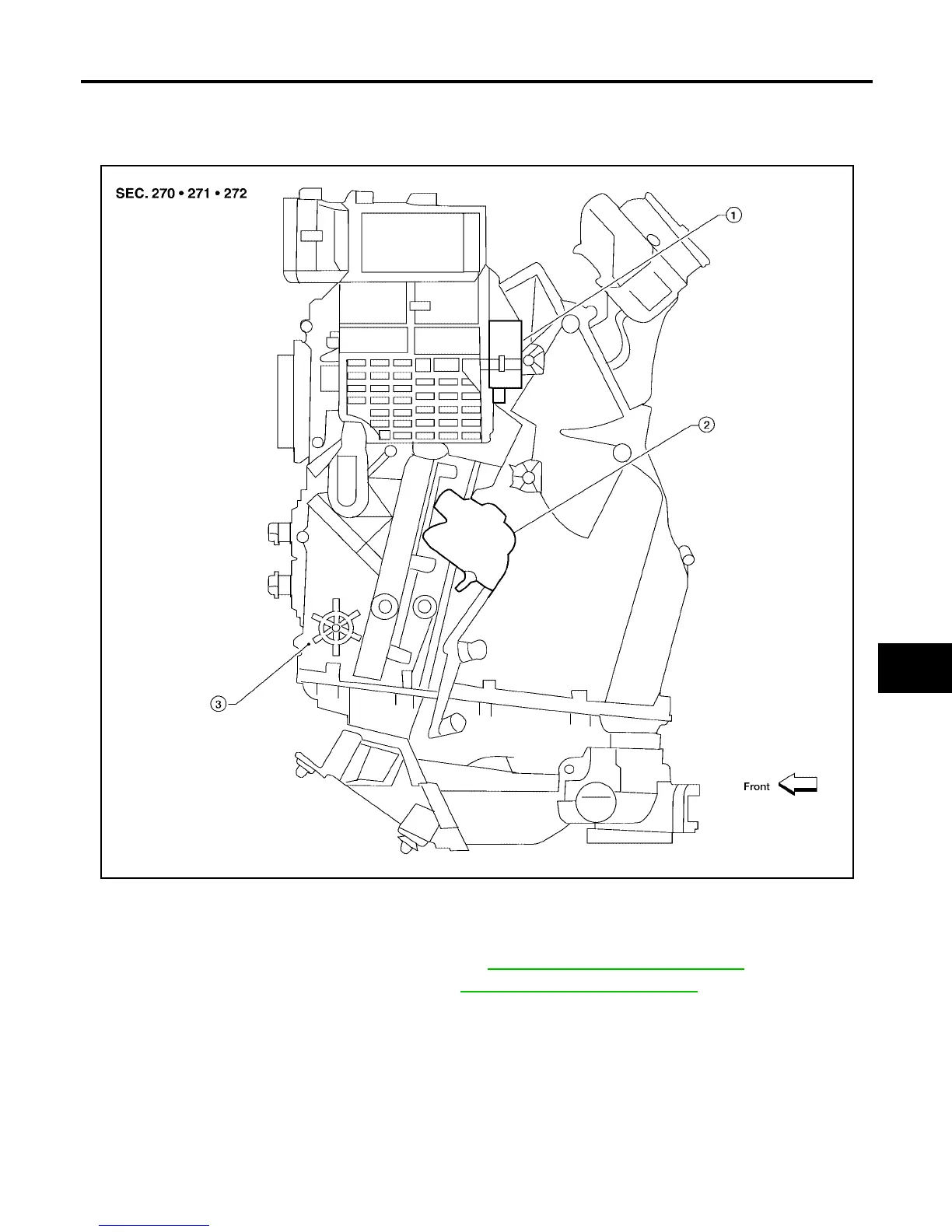 1. Intake door motor (driver) 2. Air mix door motor (front) 3. Front heater and cooling unit assembly