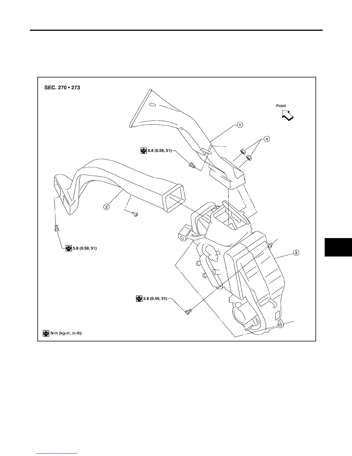 1. Defroster nozzle 2. Fresh air duct 3. Defroster duct