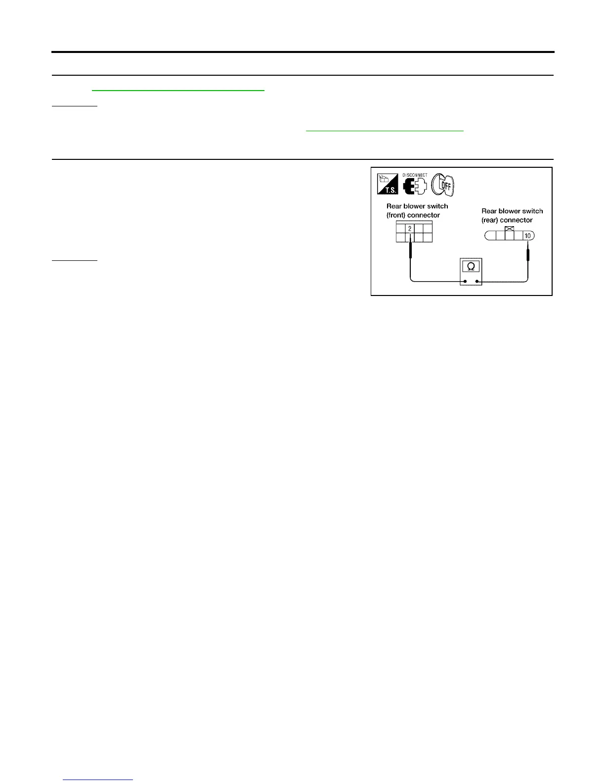 2. Check continuity between rear blower switch (front) harness