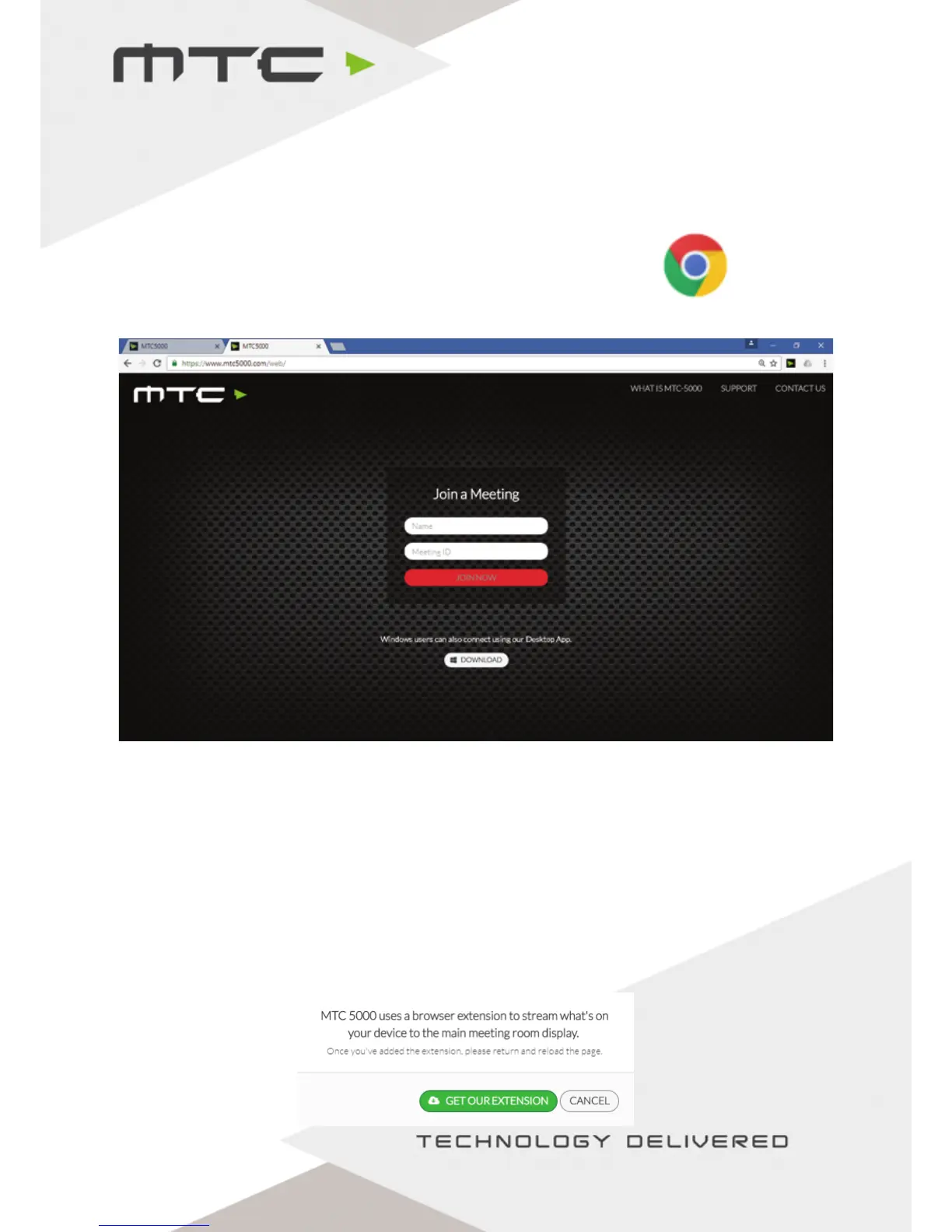 Open Chrome® and navigate to https://www.mtc5000.com - attendees will see the page below.