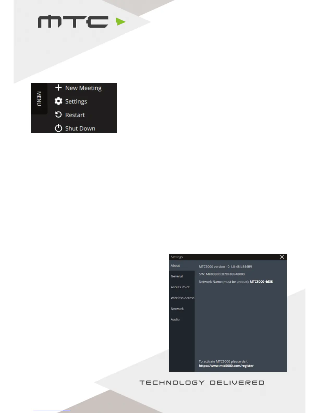 Wireless Access – Connect MTC-5000 to a wireless network.