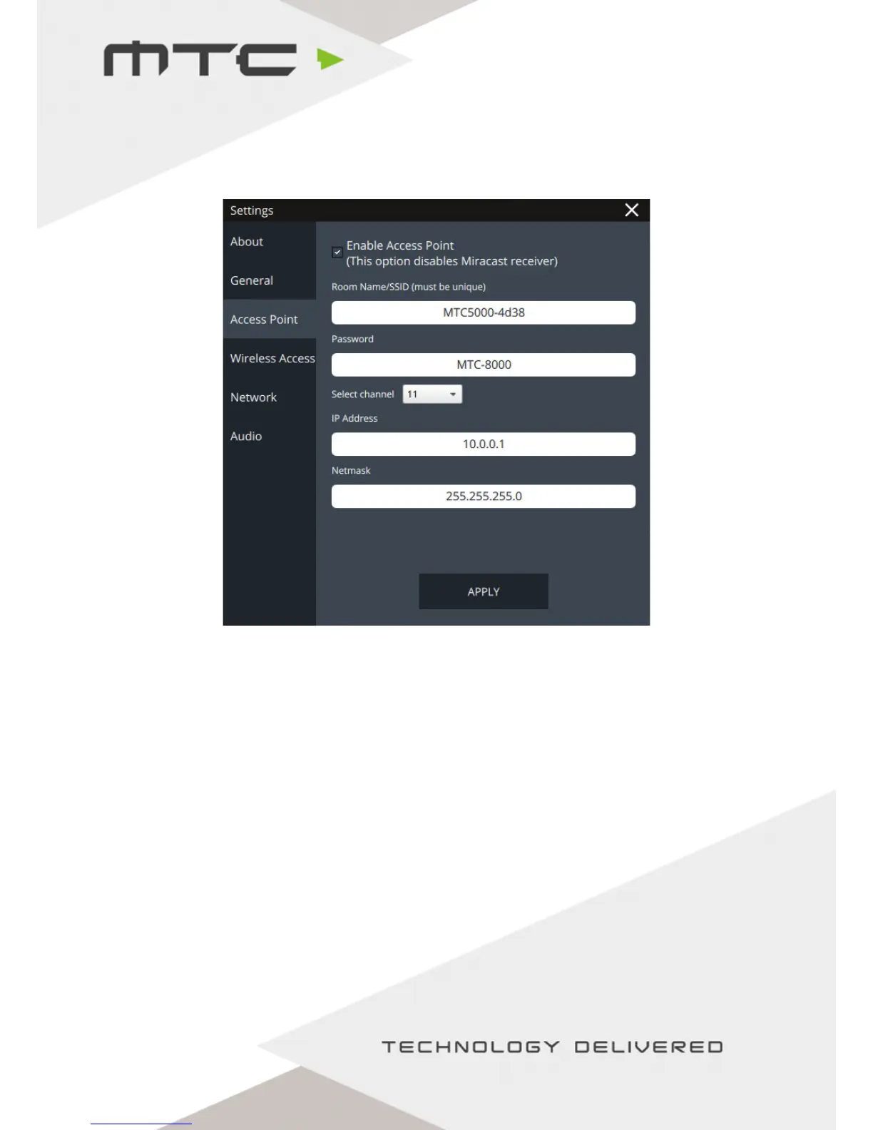 Enable Access Point - This controls whether the MTC-5000 unit broadcasts a network for the attendees to