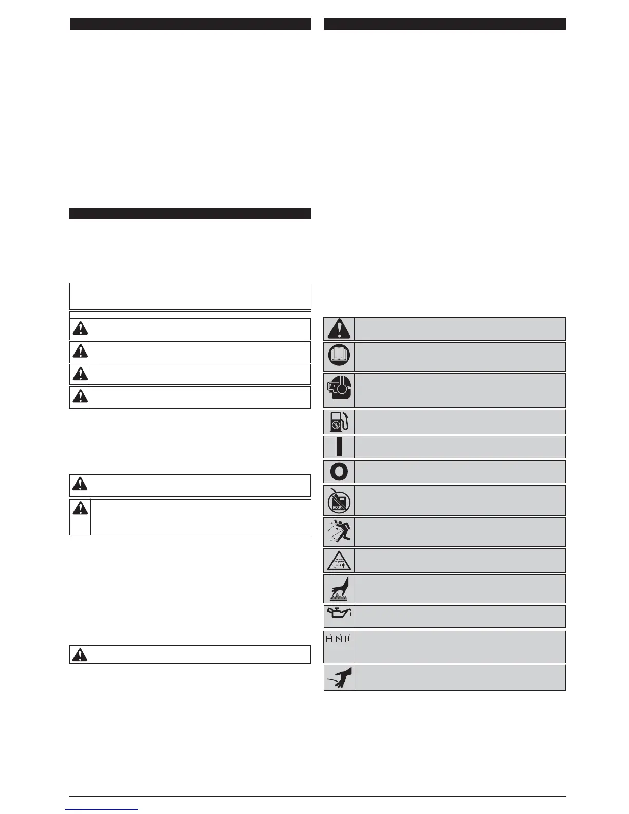 • Para reducir el riesgo de incendio, cambie los silenciadores y amortiguadores de chispas defectuosos, mantenga el motor