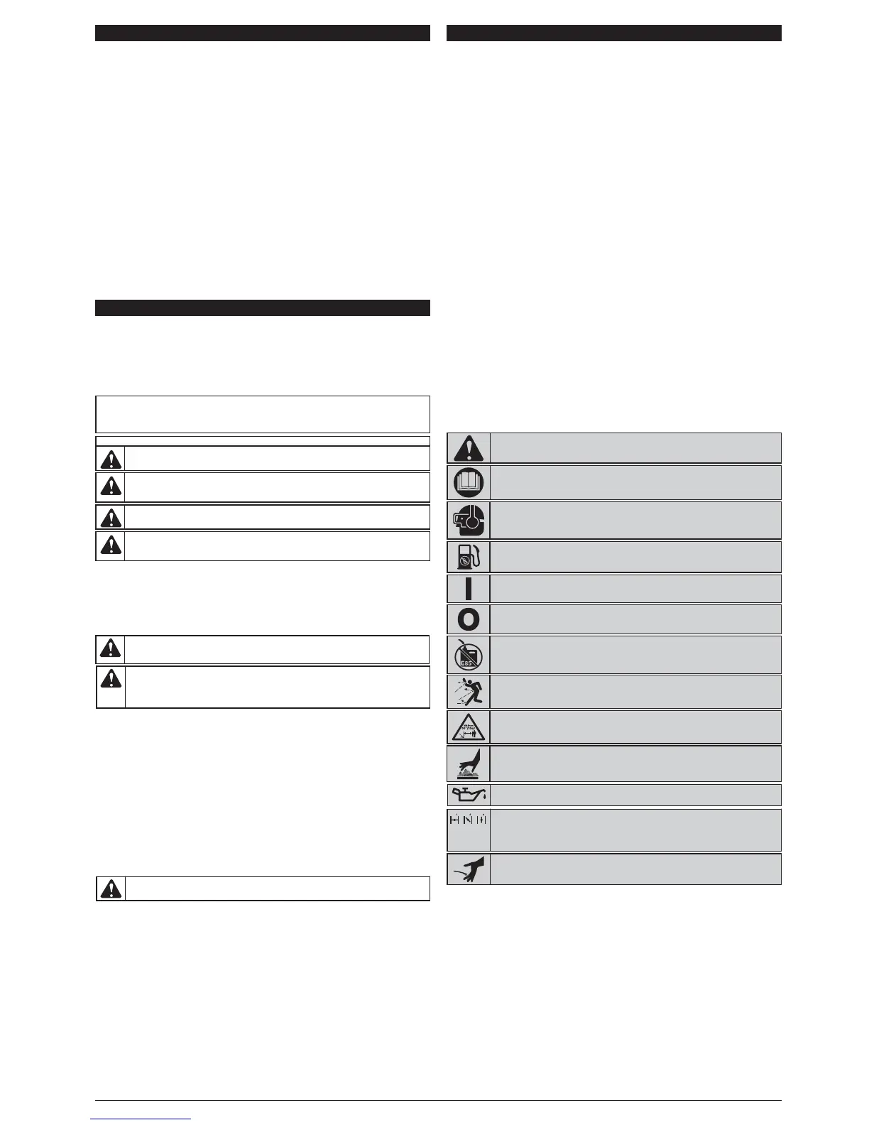 • Avoid accidental starting. Be in the starting position whenever pulling the starter rope. The operator and