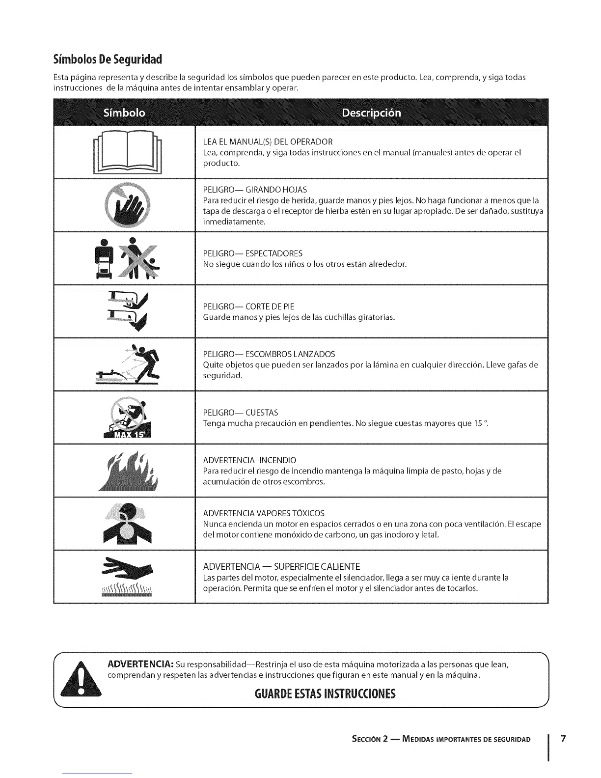 I_l ADVERTENCIA: Su responsabilidad--Restrinja el uso de esta m_iquina motorizada a las personas que lean, |