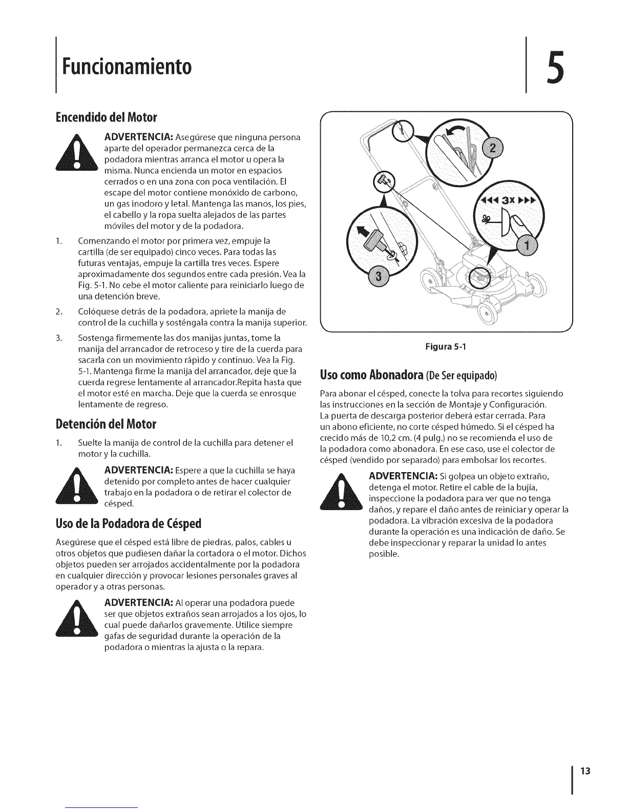 Fig. 5-1. No cebe el motor caliente para reiniciarlo luego de