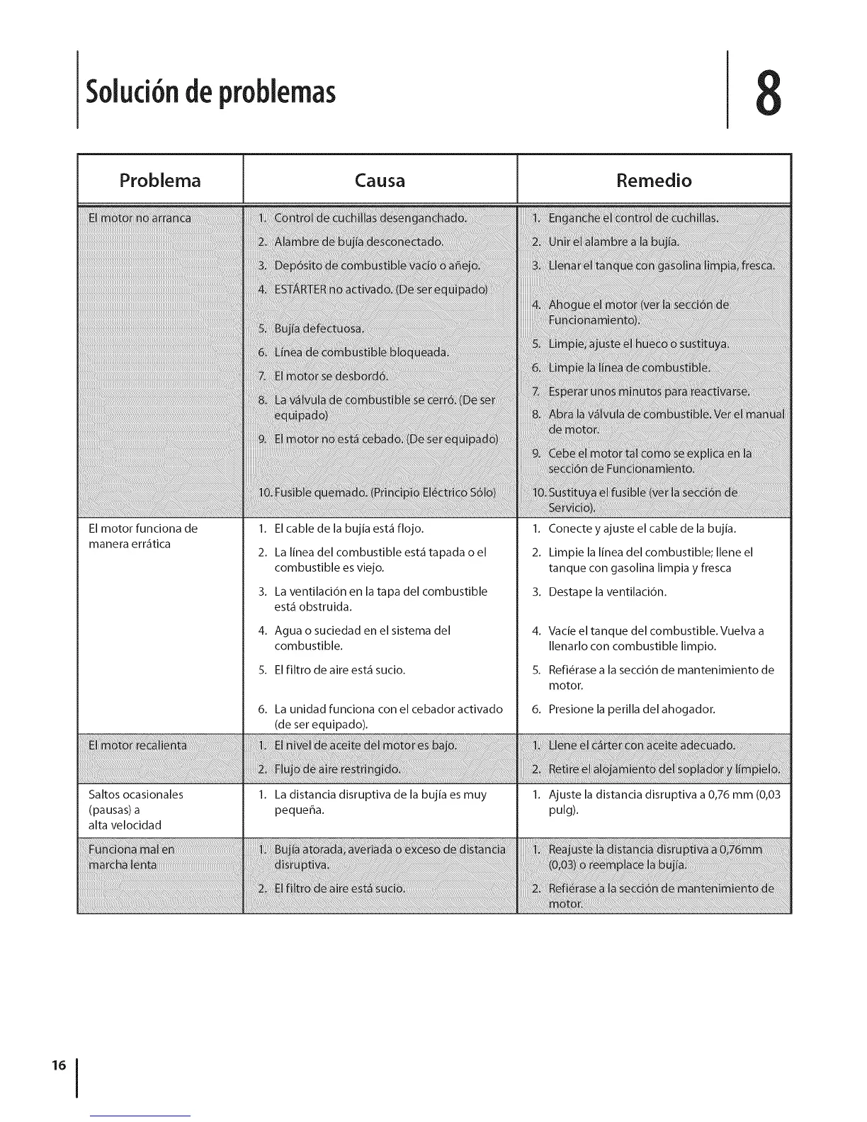 Vacie el tanque del combustible. Vuelva a