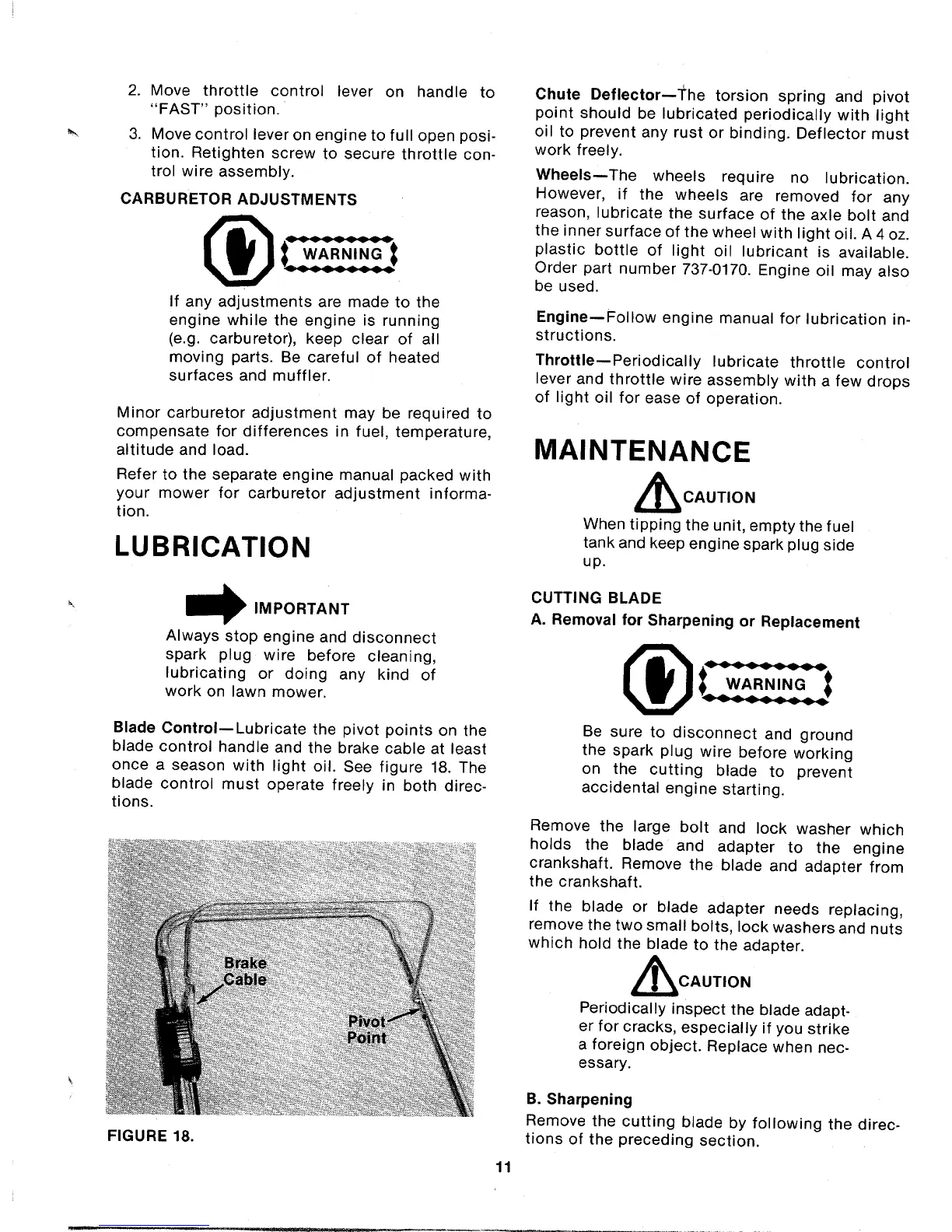 MTD 115-062-352 - Lubrication Points; Maintenance Procedures; Cutting Blade Care