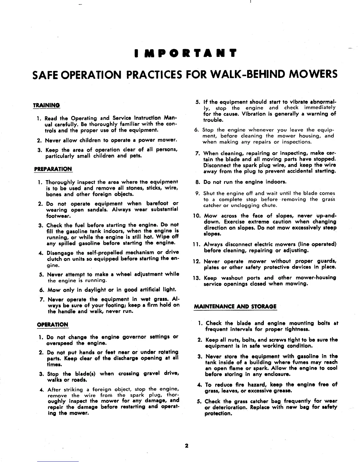MTD 115-152A - Safe Operation Practices; Training and Preparation; Operation Guidelines; Maintenance and Storage Safety