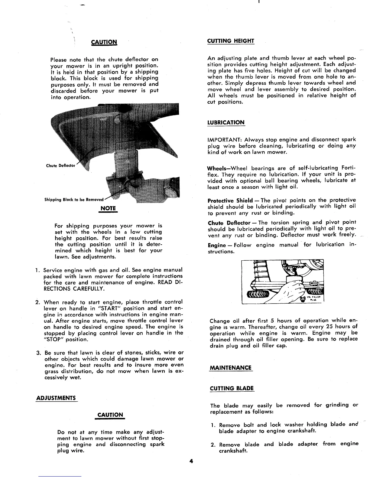 MTD 115-152A - Cutting Height Adjustment; Lubrication and Maintenance; Cutting Blade Maintenance