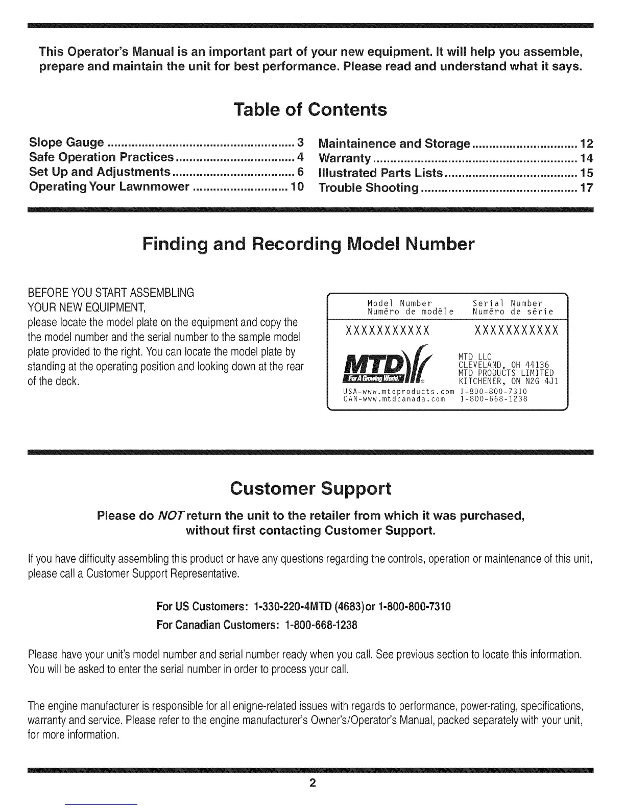USA-www.mtdproducts.com 1-800-800-7310
