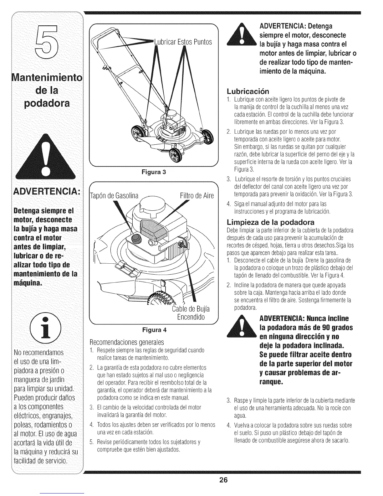 Debelimpiarlaparteinferiordela cubiertadela podadora