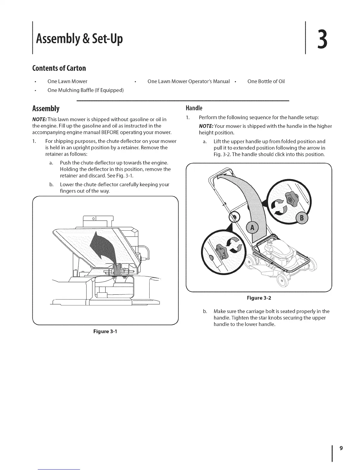1. For shipping purposes, the chute deflector on your mower