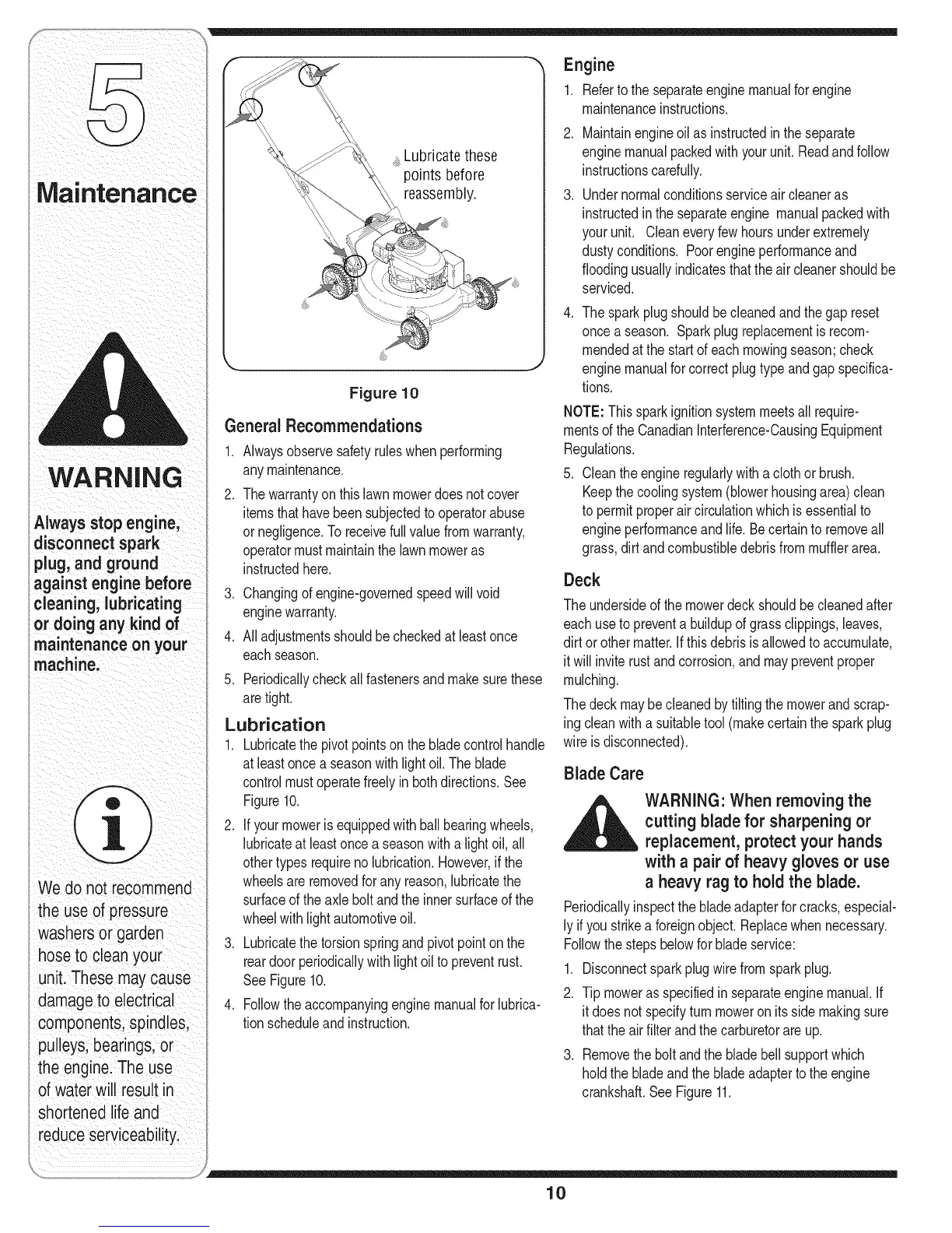 Maintainengineoil as instructedinthe separate