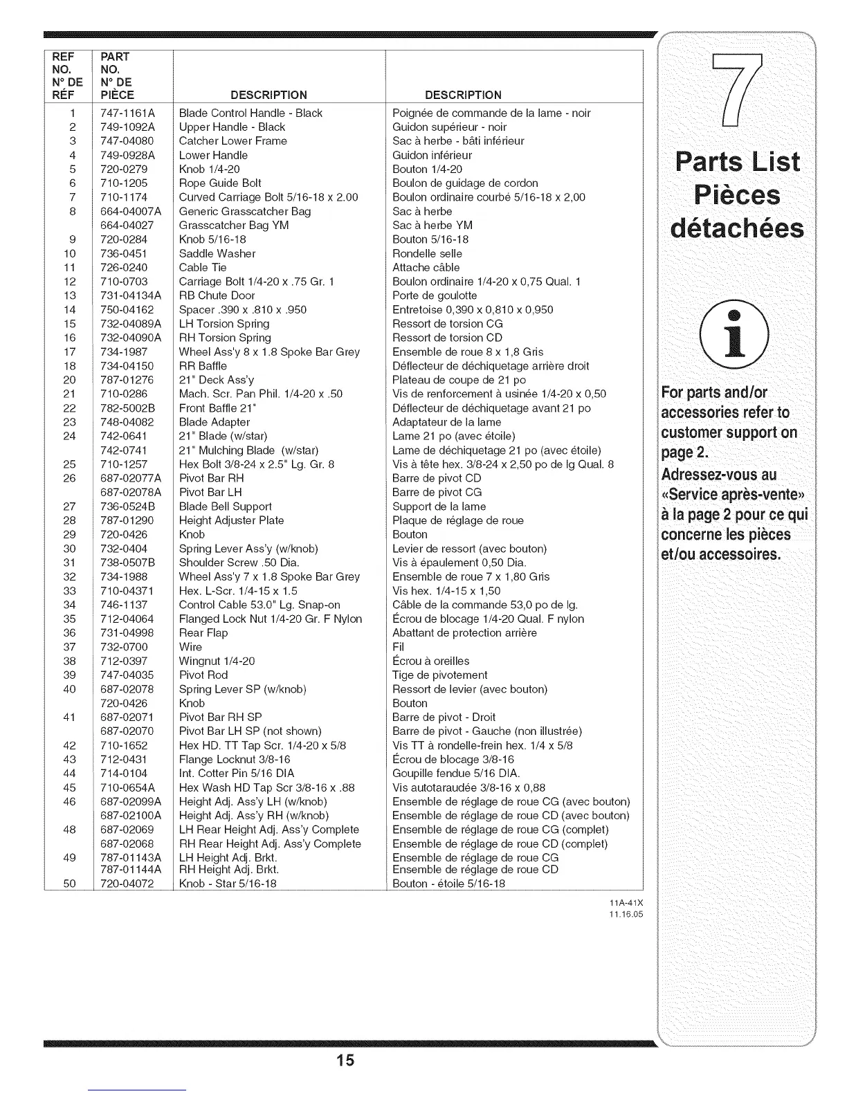 22 782-5002B Front Baffle 21" Deflecteur de dechiquetage avant 21 pc accessories refer to