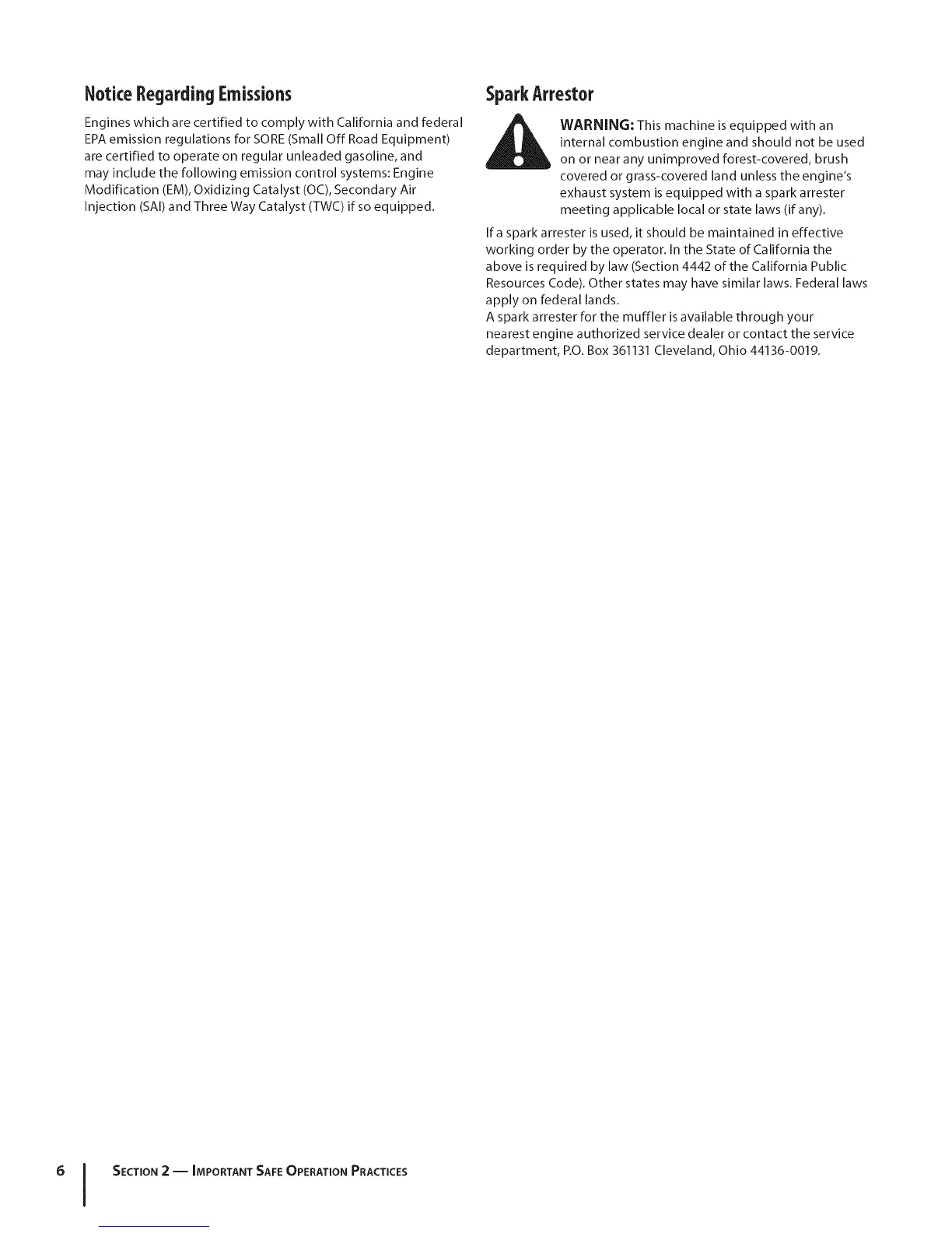 6 I SECTION 2 -- IMPORTANT SAFE OPERATION PRACTICES