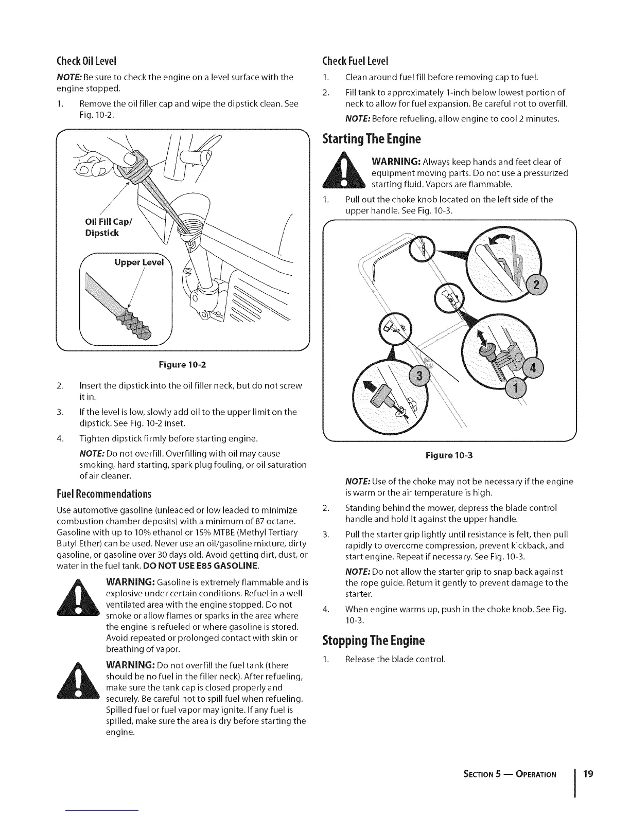 Use automotive gasoline (unleaded or low leaded to minimize 2.