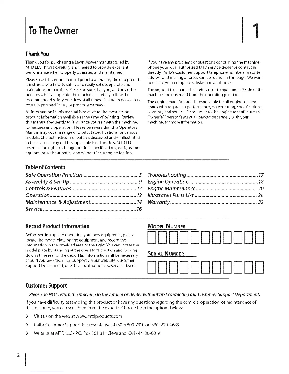 Please do NOT return the machine to the retailer or dealer without first contacting our Customer Support Department.