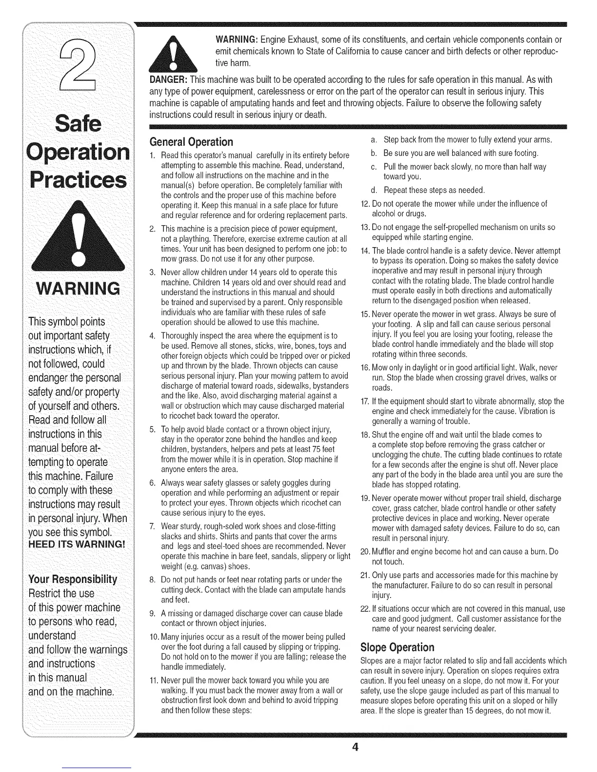 caution.Ifyoufeel uneasyona slope,do notmowit. Foryour