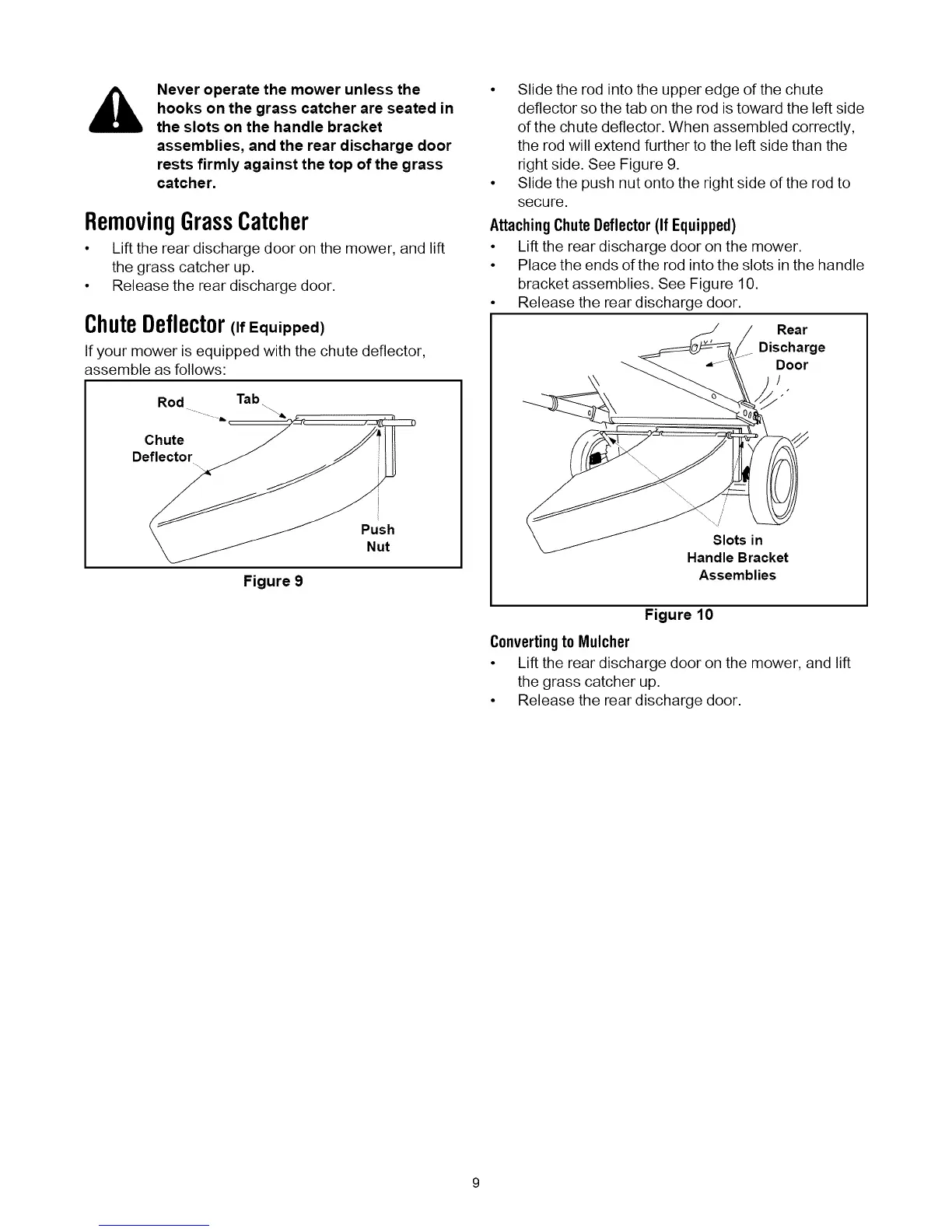 If your mower is equipped with the chute deflector,