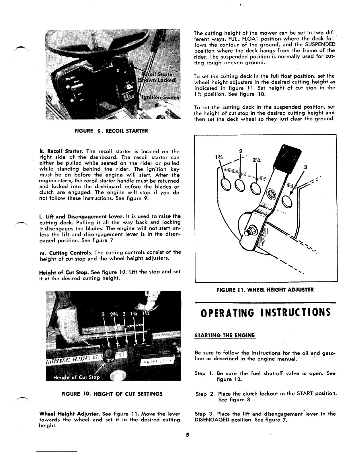MTD 130-460 - OPERATING THE MOWER; Cutting Height Adjustment; Engine Starting Procedures