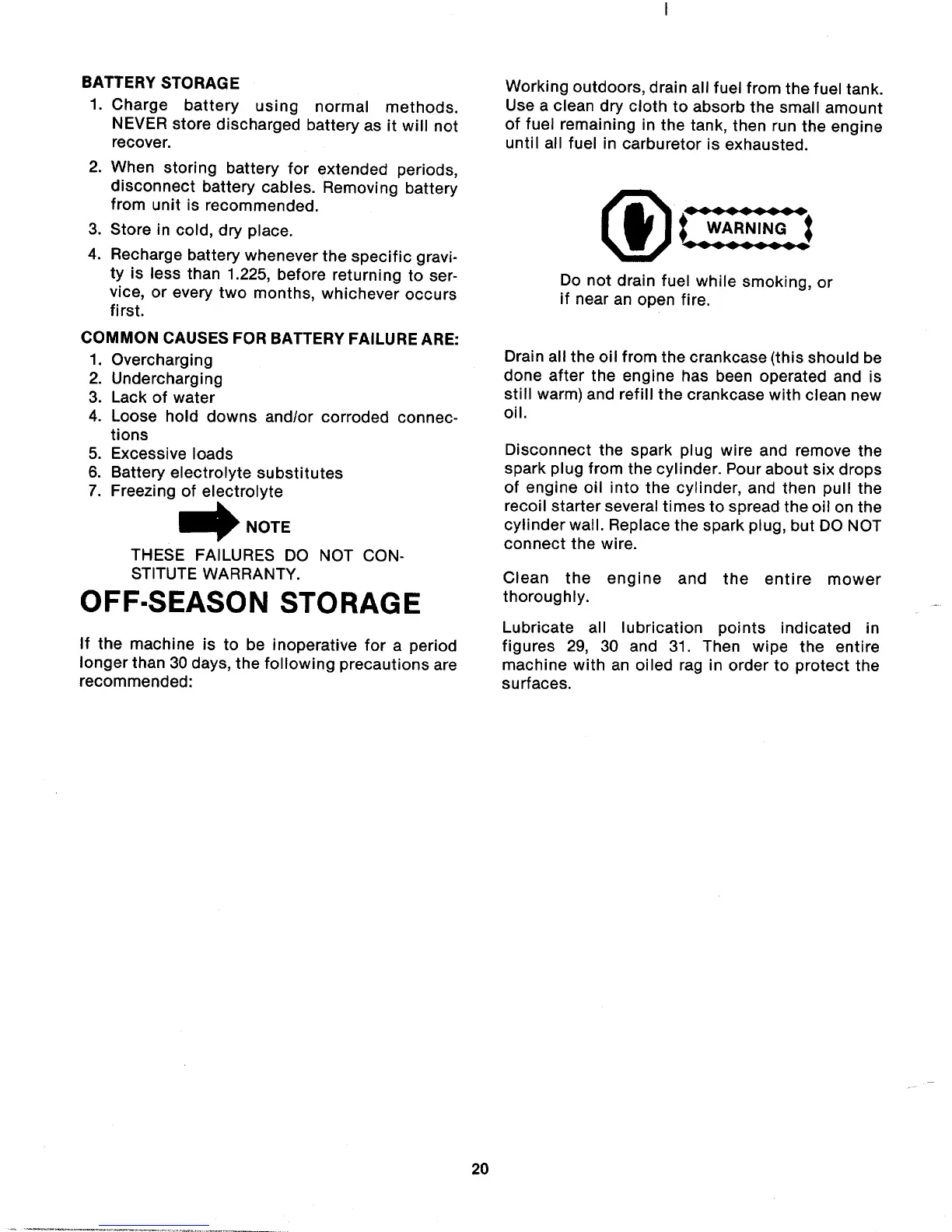 MTD 131-497A - BATTERY STORAGE; OFF-SEASON STORAGE
