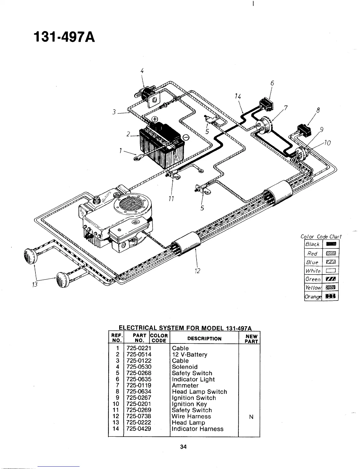 MTD 131-497A - ELECTRICAL SYSTEM FOR MODEL 131-497 A