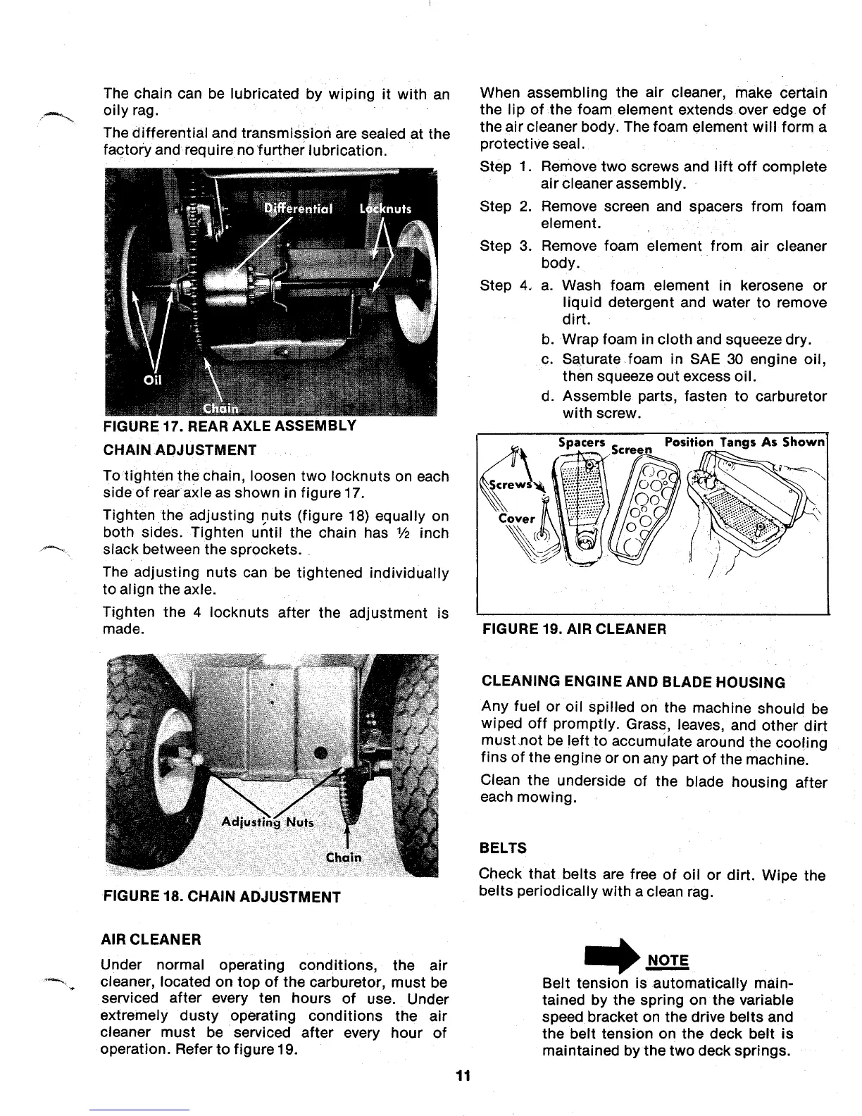 MTD 136-480A - MAINTENANCE; CHAIN ADJUSTMENT; AIR CLEANER; CLEANING ENGINE AND BLADE HOUSING