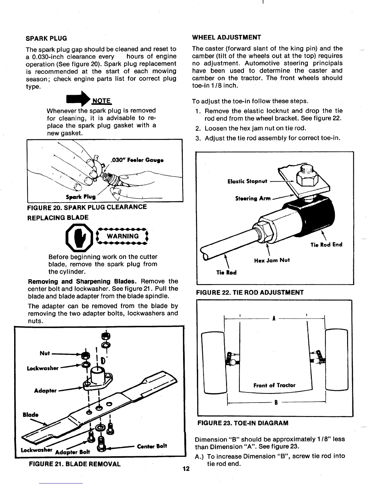 MTD 136-480A - MAINTENANCE; SPARK PLUG; REPLACING BLADE; WHEEL ADJUSTMENT