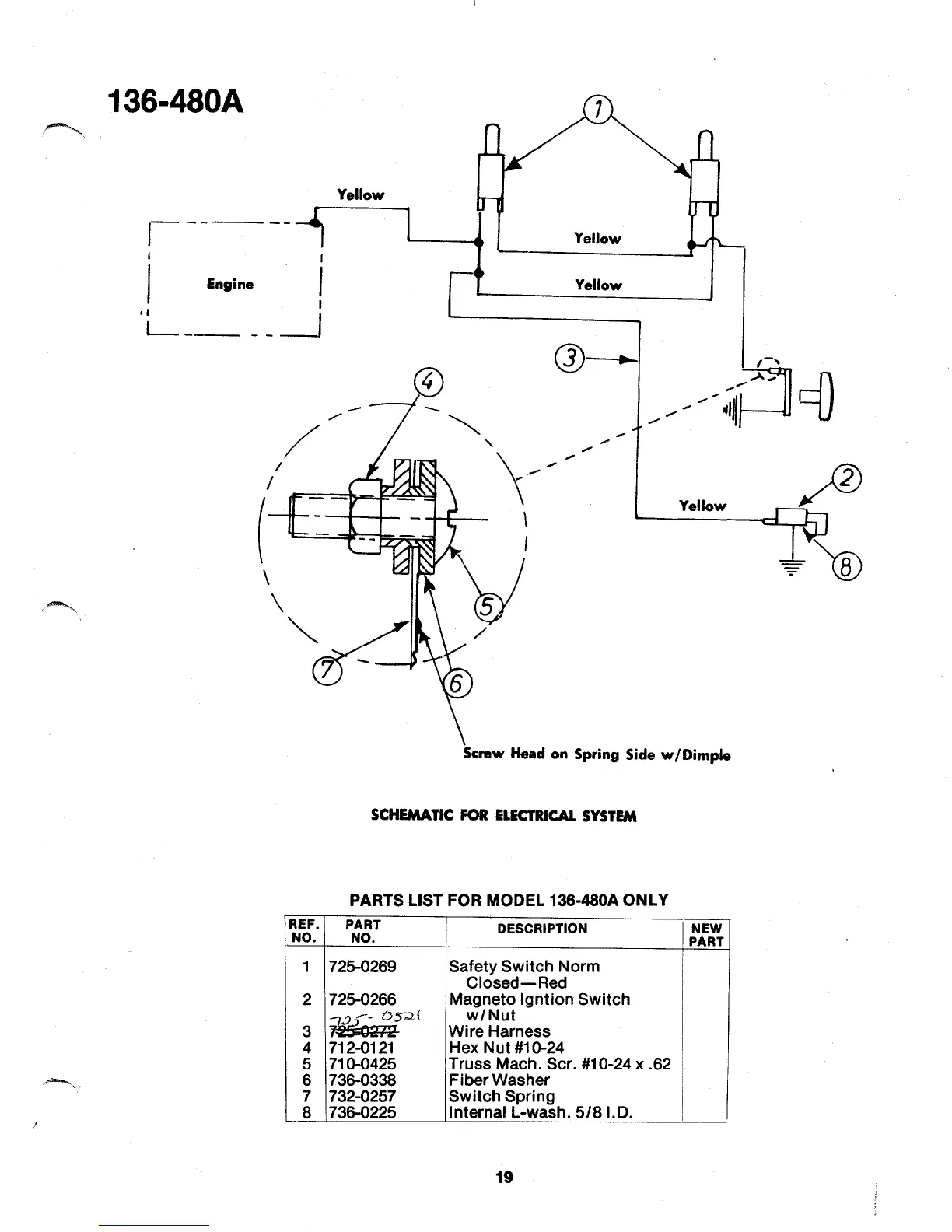MTD 136-480A - SCHEMATIC FOR ELECTRICAL SYSTEM; PARTS LIST FOR MODEL 136-480 A ONLY