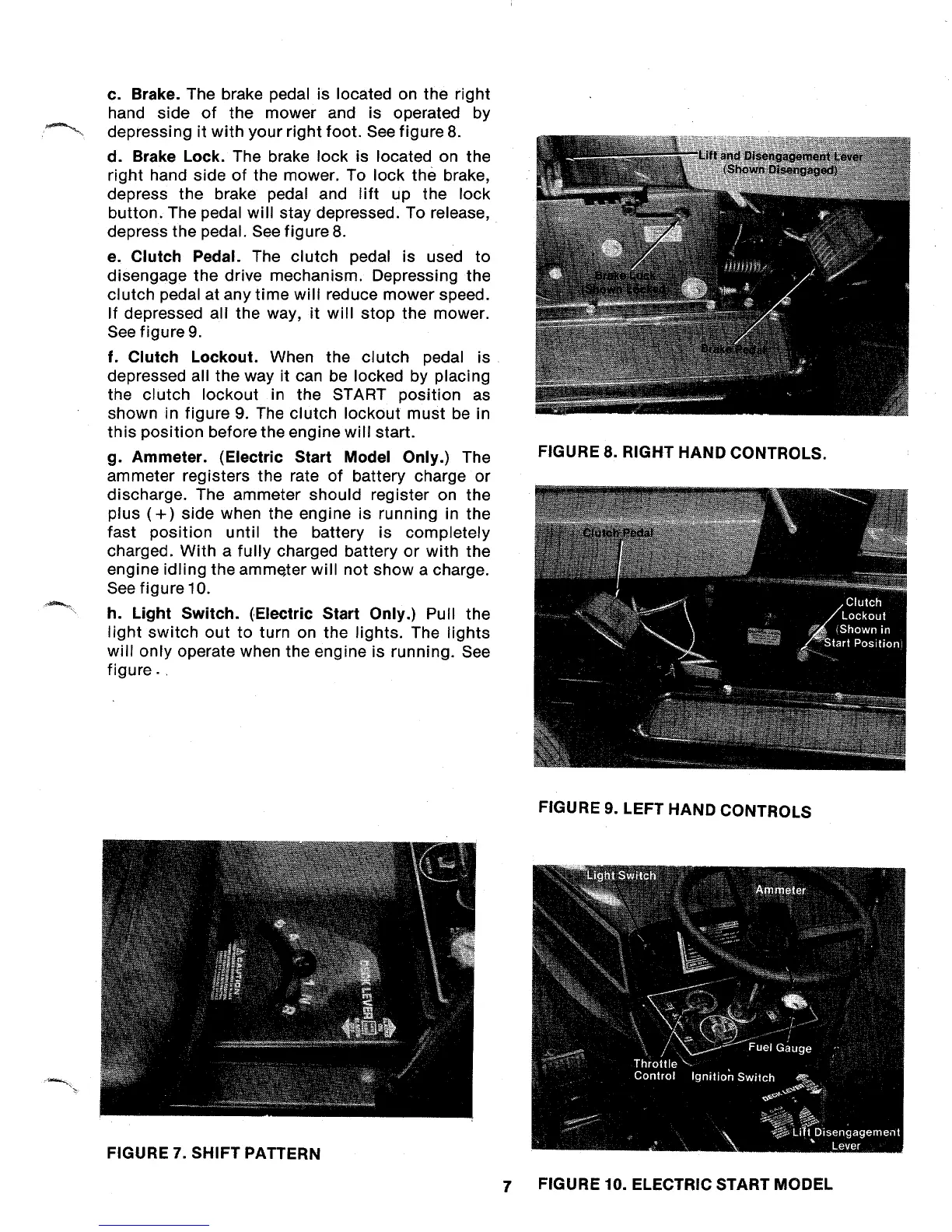 MTD 136-480A - CONTROLS; Brake and Brake Lock; Clutch Pedal and Lockout; Ammeter (Electric Start Model Only)