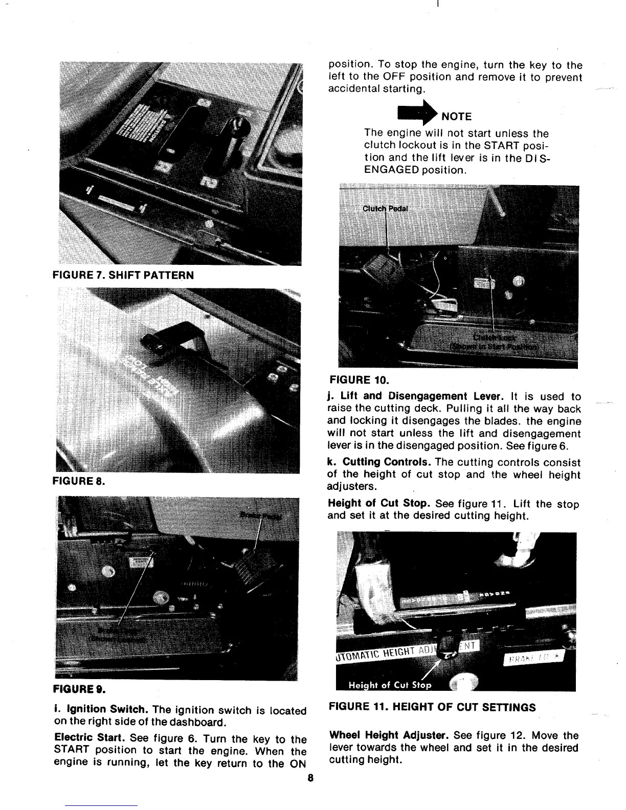 MTD 139-498A - Shift Pattern; Height of Cut Settings