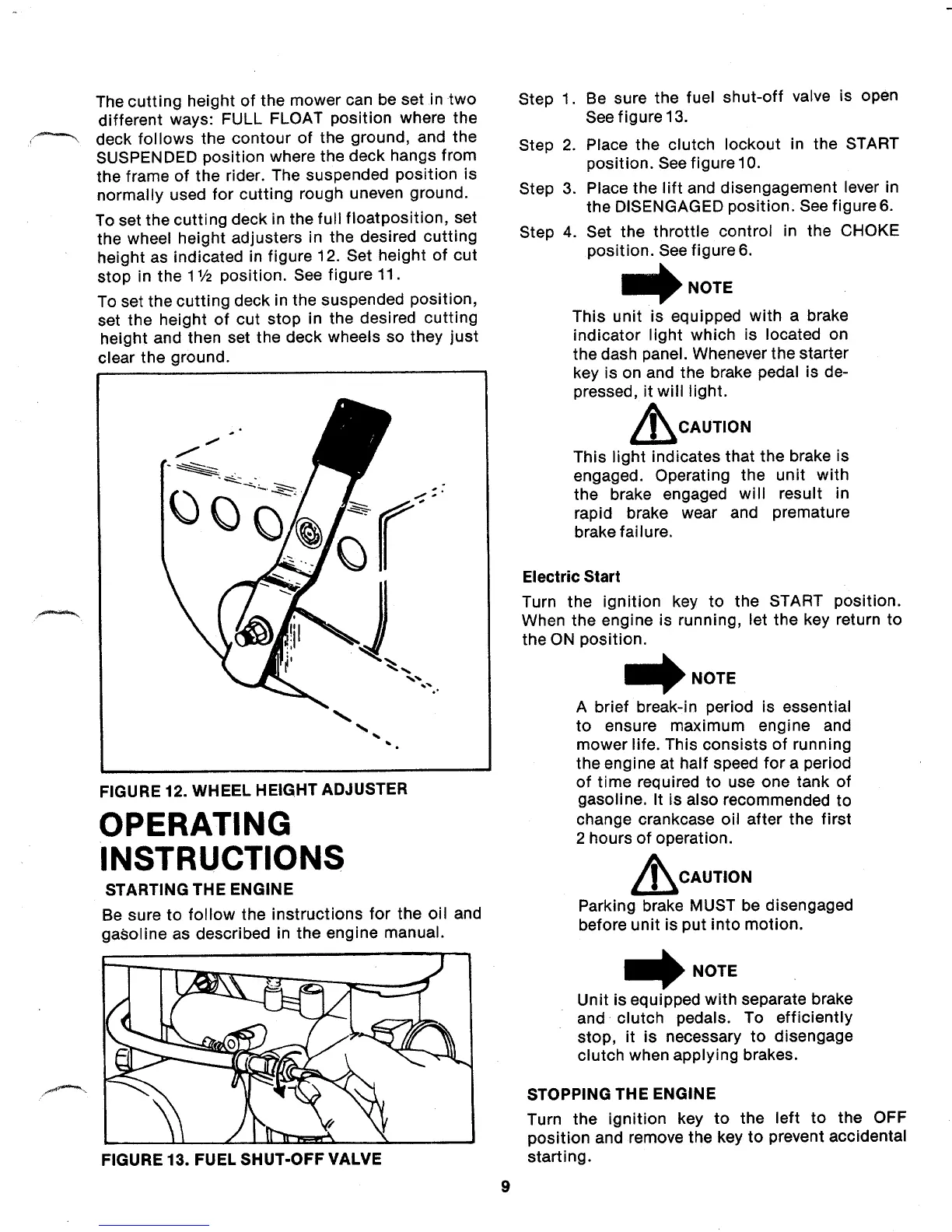MTD 139-498A - Operating Instructions; Wheel Height Adjuster; Starting the Engine; Stopping the Engine