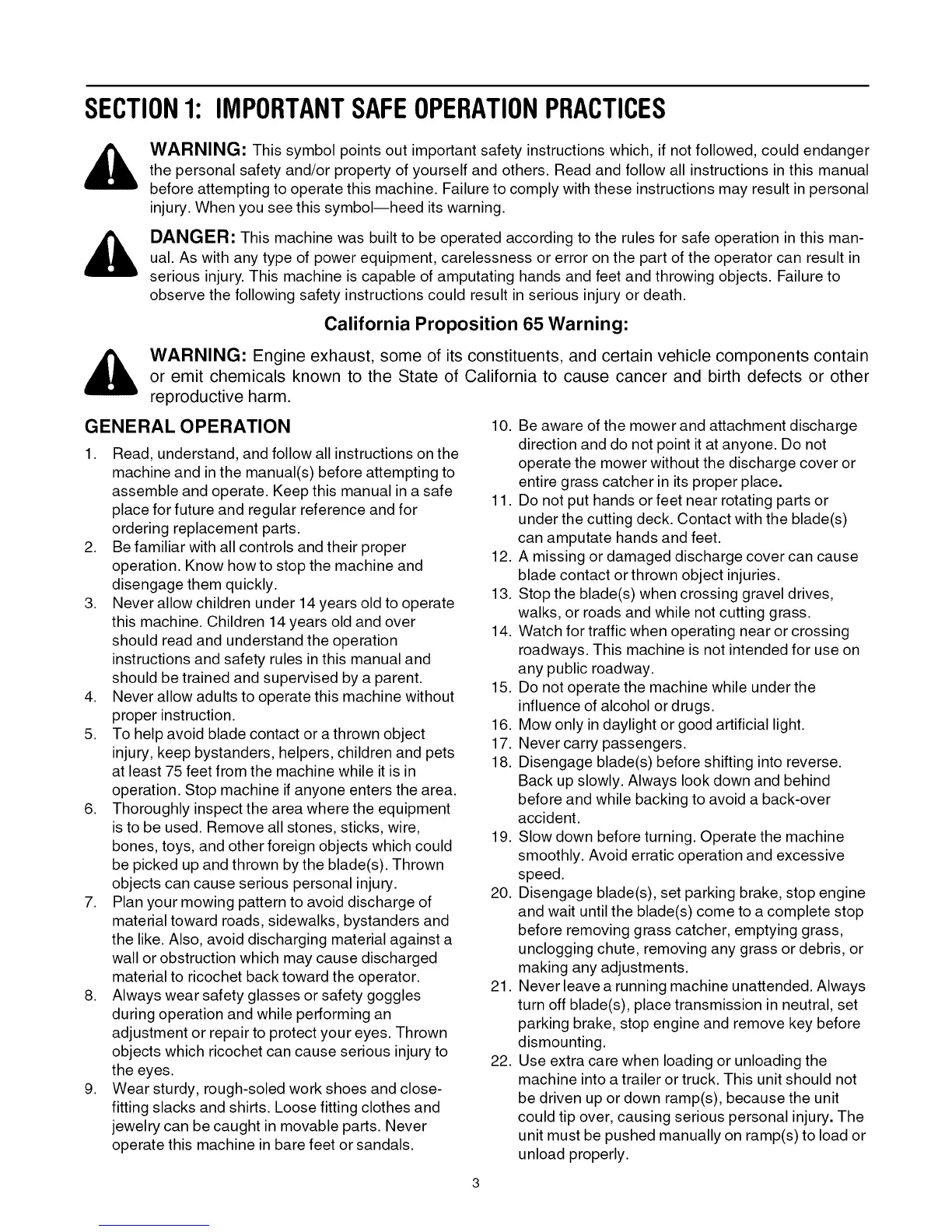 SECTION1: IMPORTANTSAFEOPERATIONPRACTICES