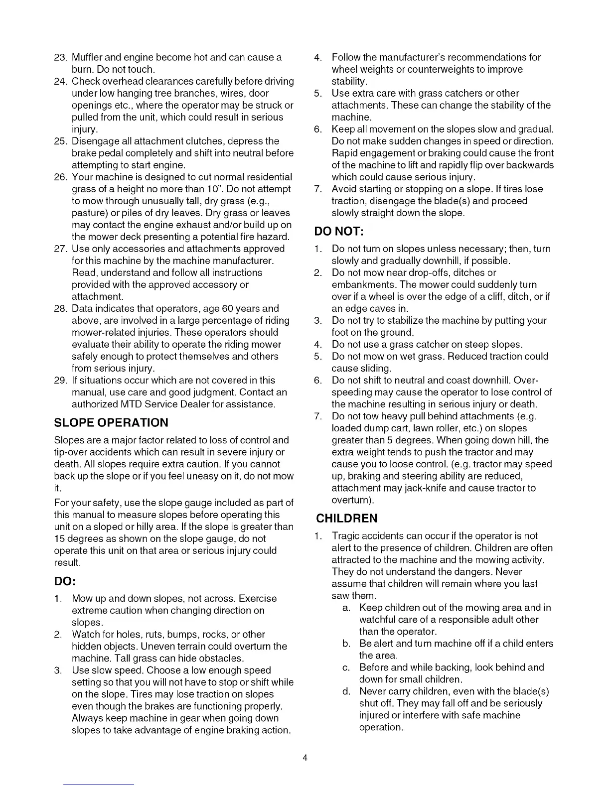 back up the slope or if you feel uneasy on it, do not mow