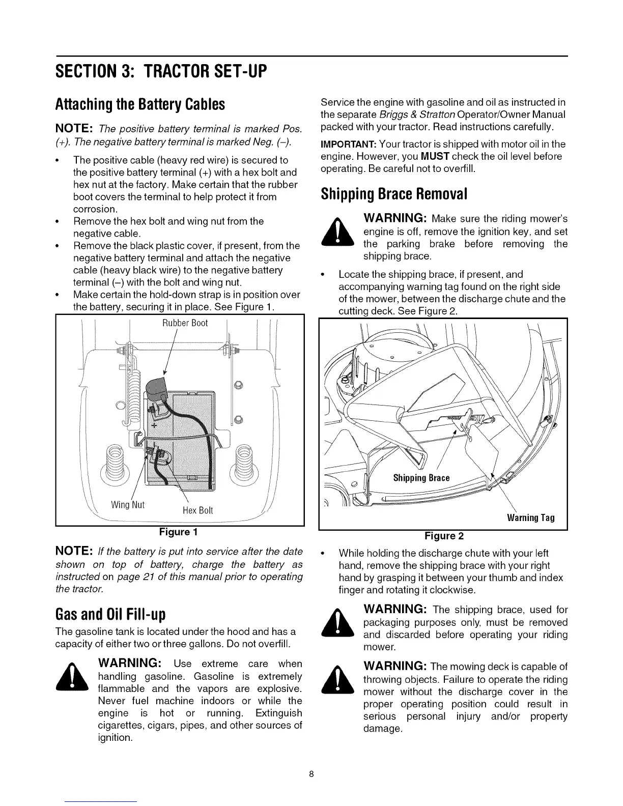 IMPORTANT:Your tractor is shipped with motor oil in the