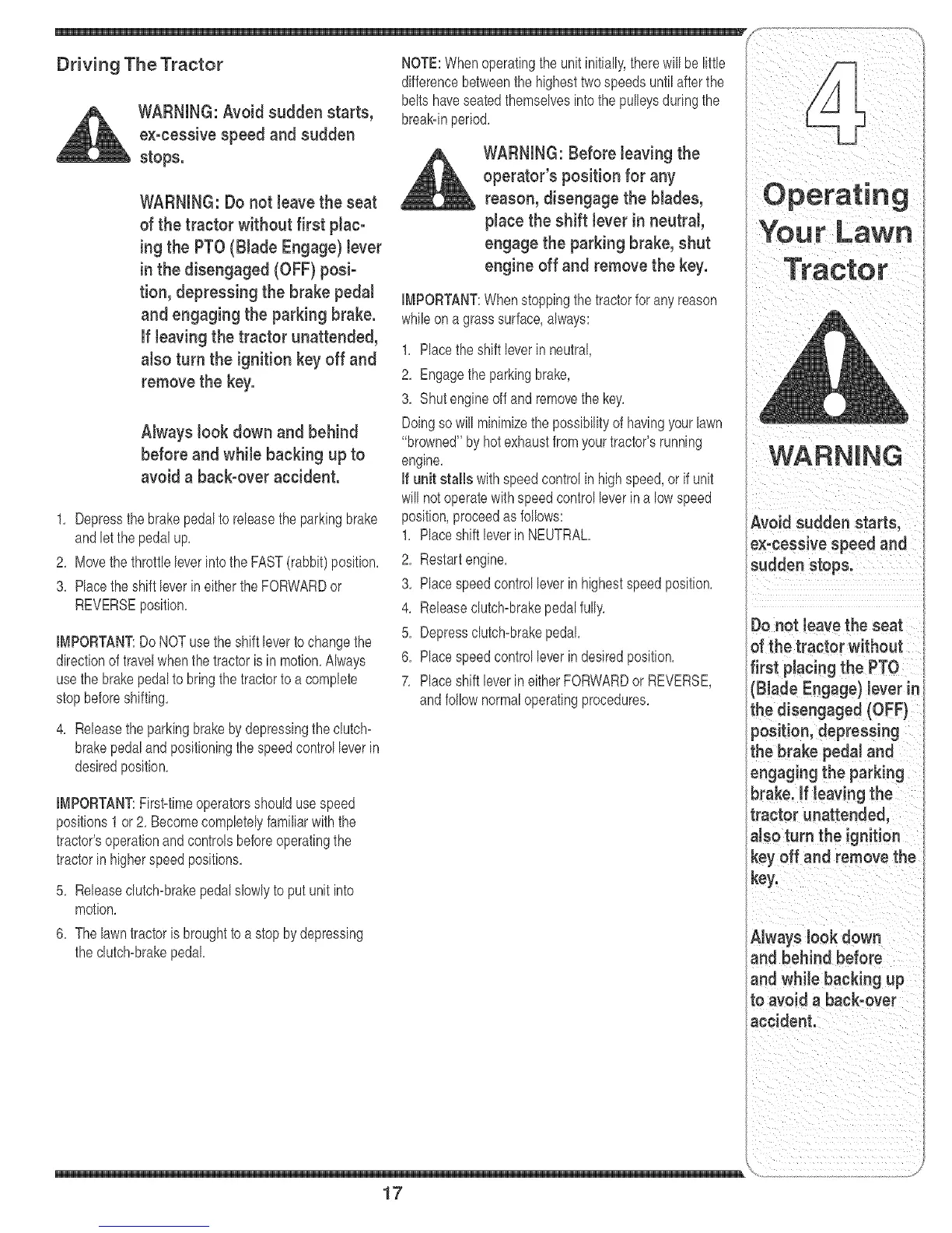 directionof travelwhenthe tractorisin motion,Always