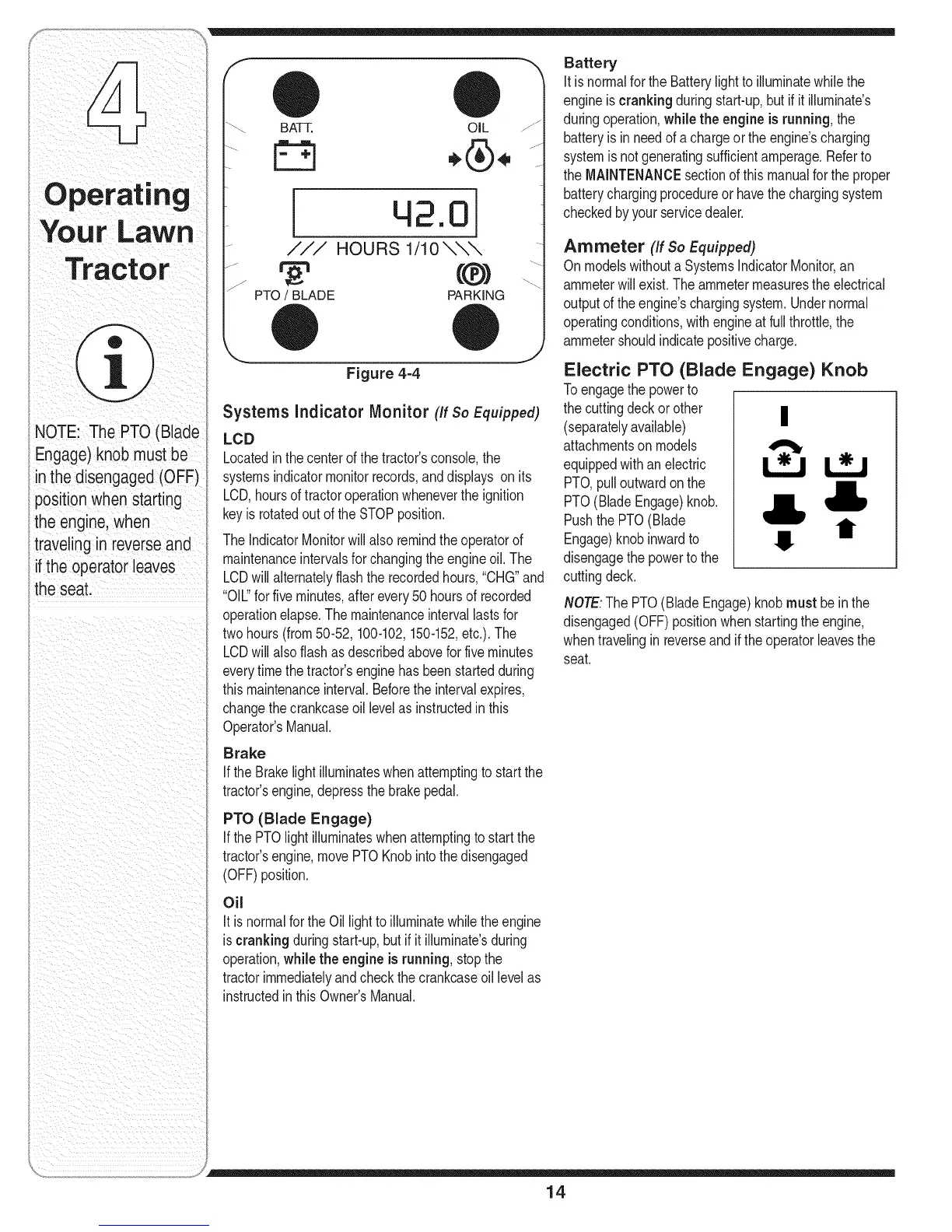NOTE:ThePTO(BladeEngage)knobmust bein the