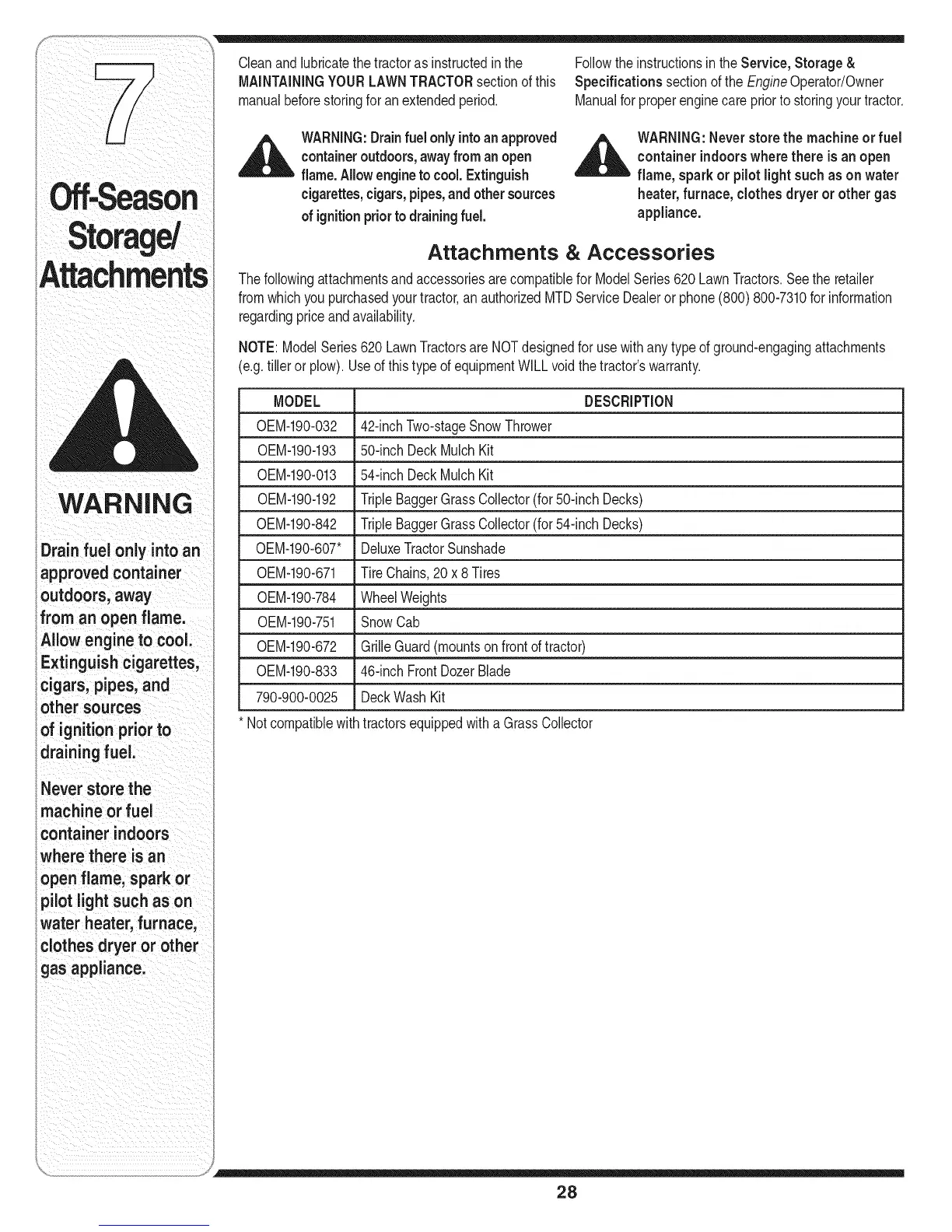 Thefollowingattachmentsandaccessoriesarecompatiblefor ModelSeries620 LawnTractors.Seethe retailer