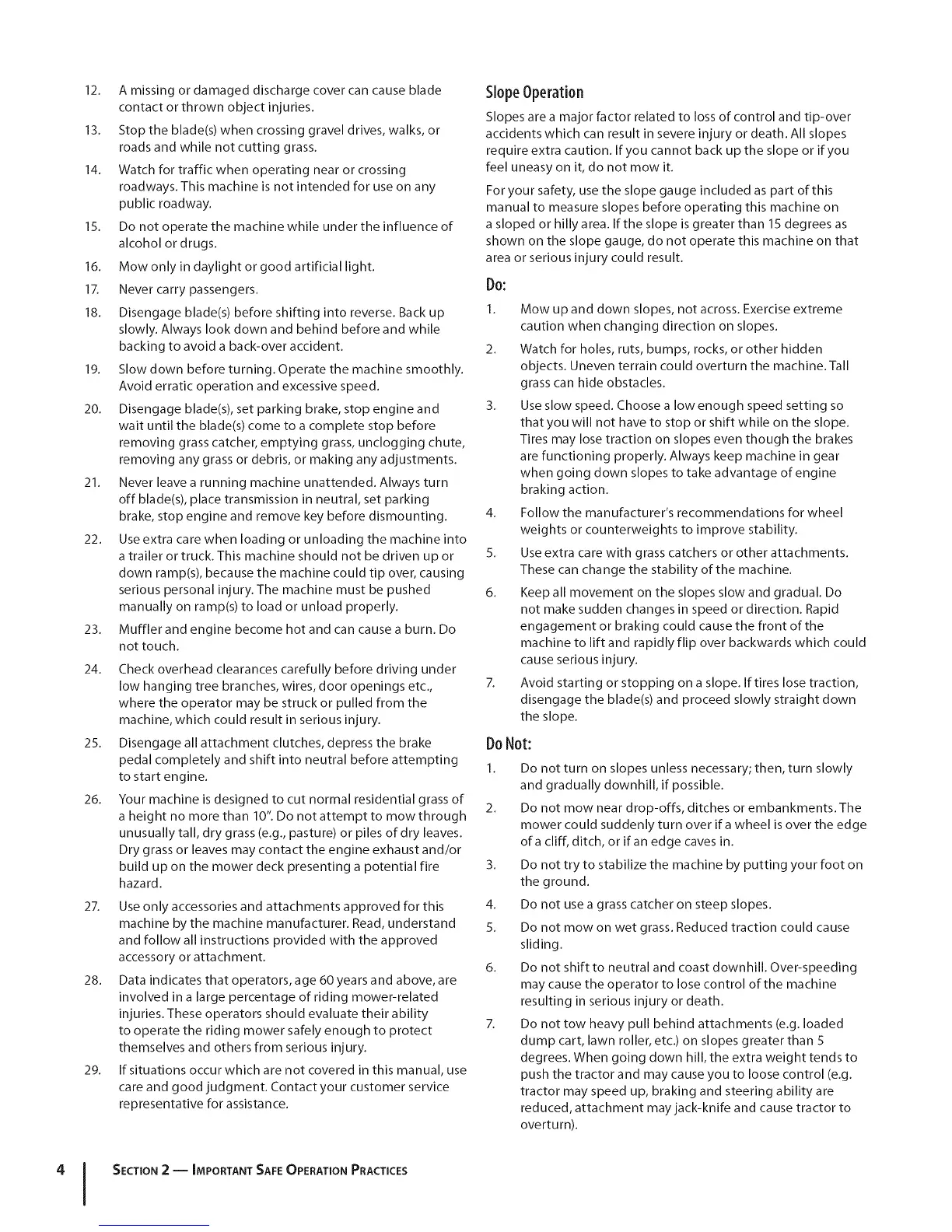 4 I SECTION 2 -- IMPORTANT SAFE OPERATION PRACTICES