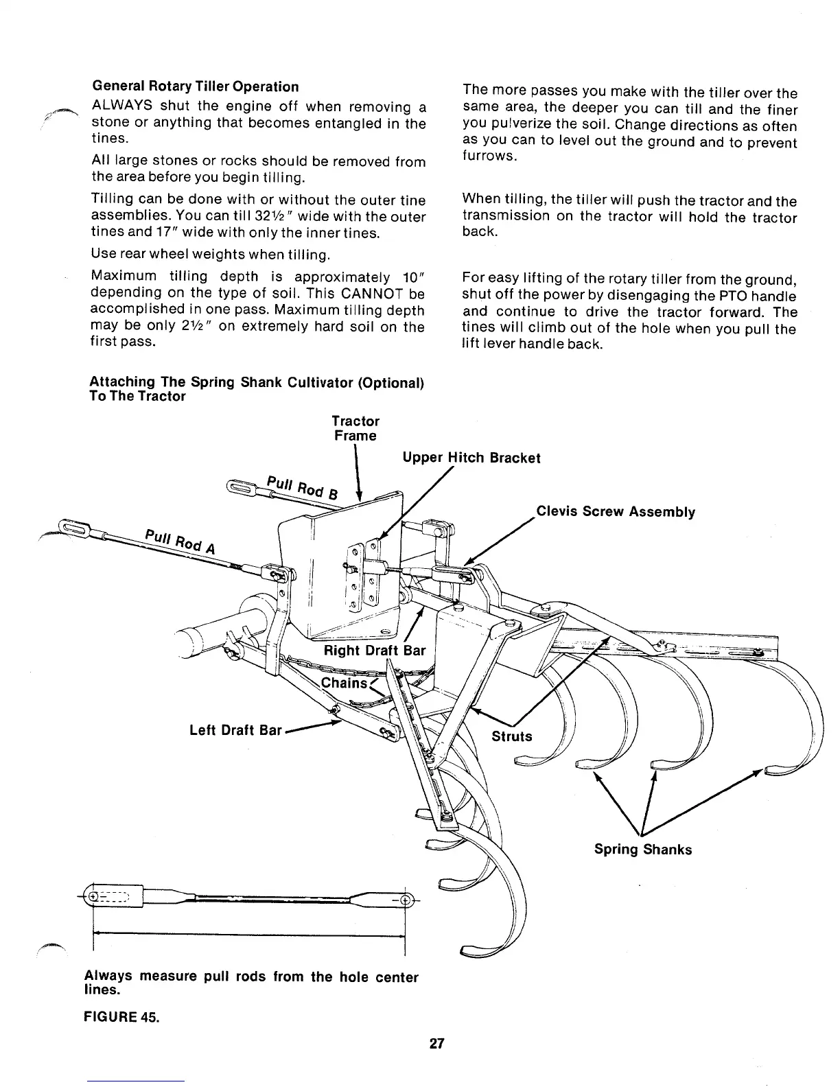 MTD 140-990A - General Roatery Tiller Operation; Attaching the Spring Shank Cultivator to the Tractor