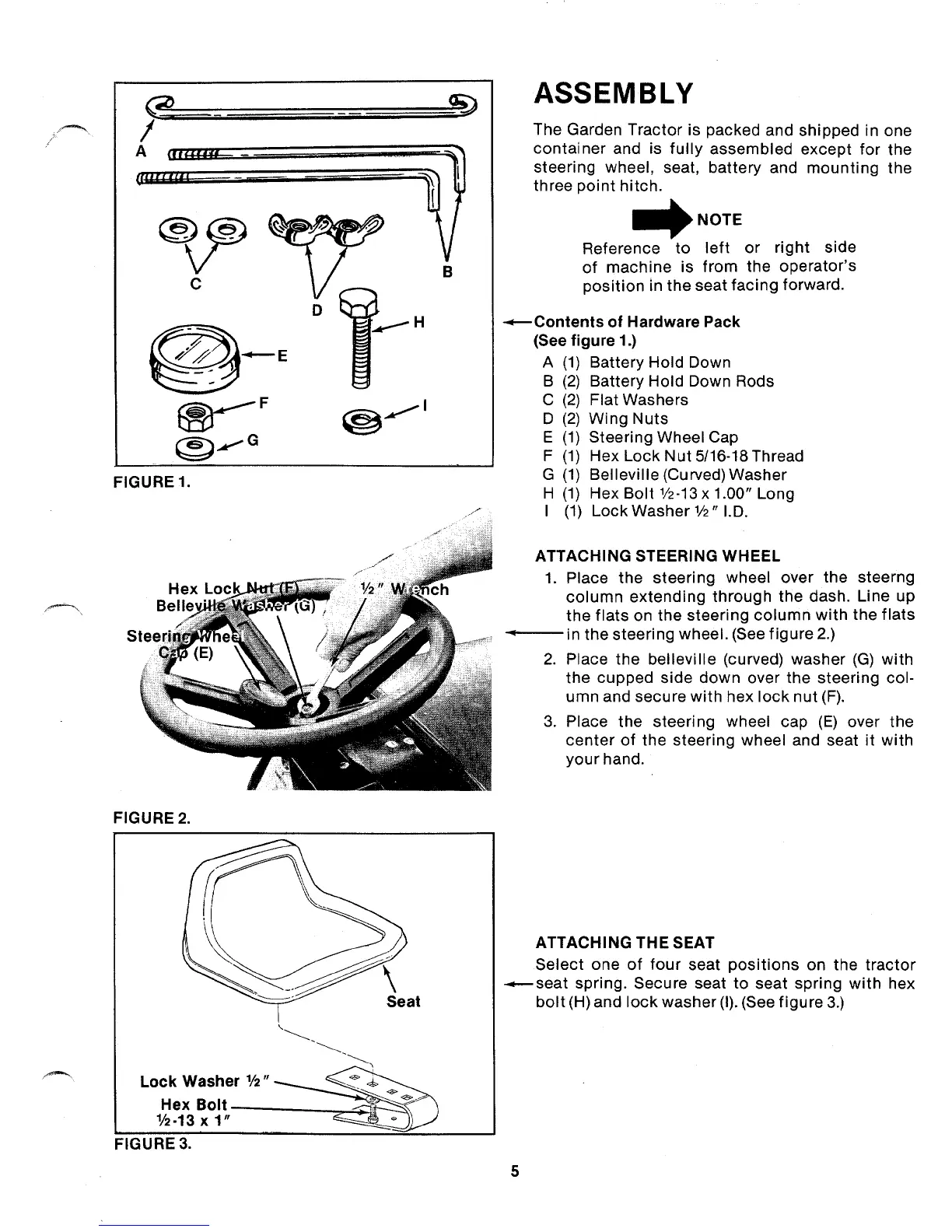 MTD 140-990A - Assembly; Attaching Steering Wheel; Attaching the Seat; Contents of Hardware Pack