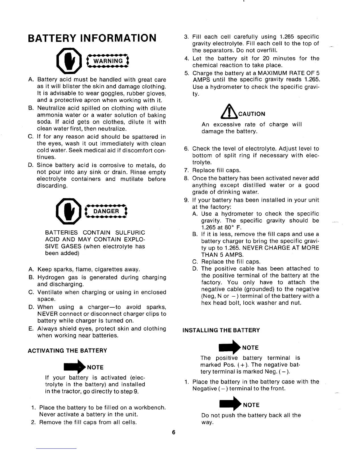 MTD 140-990A - Battery Information; Activating the Battery; Installing the Battery