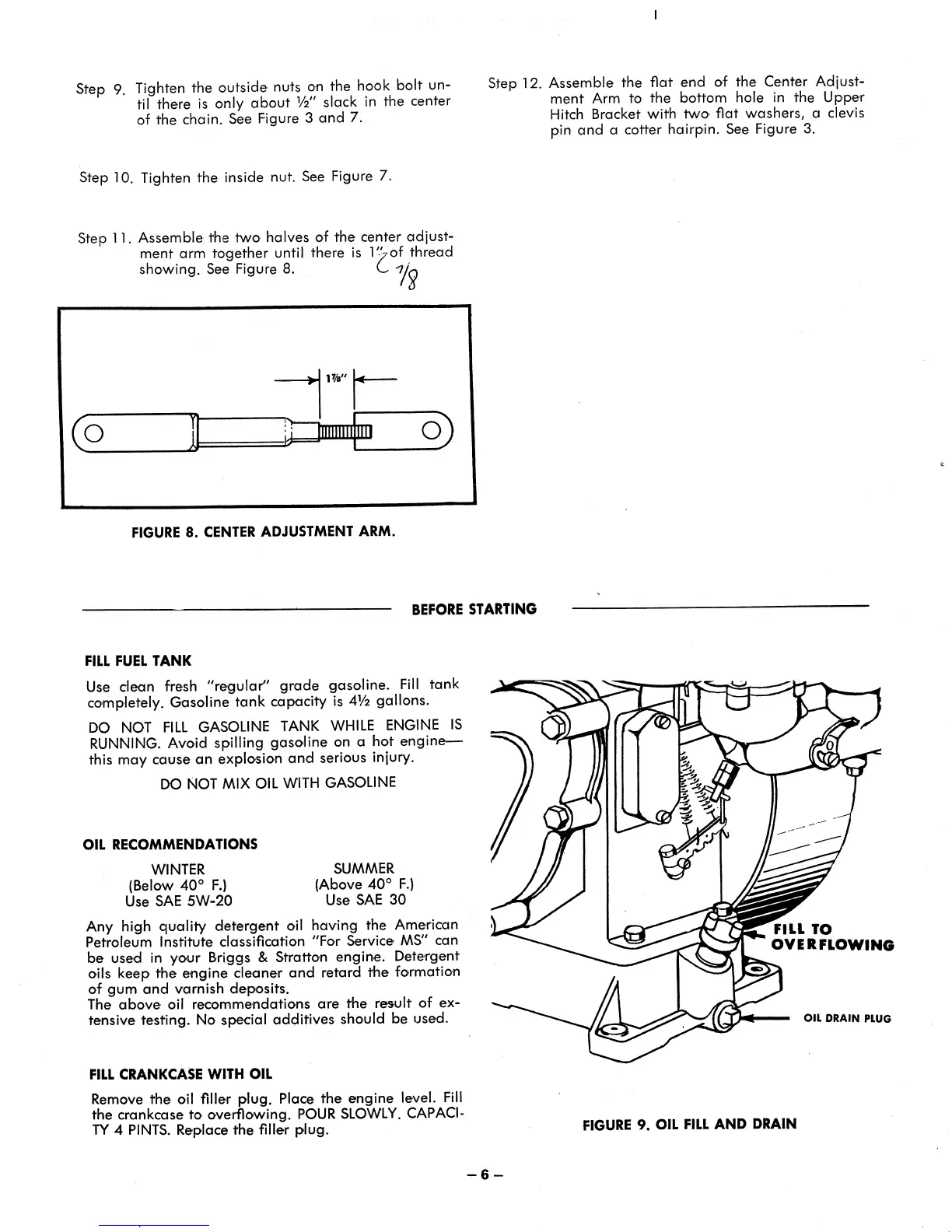 MTD 141-990 - Before Starting; Fill Fuel Tank; Oil Recommendations; Fill Crankcase with Oil
