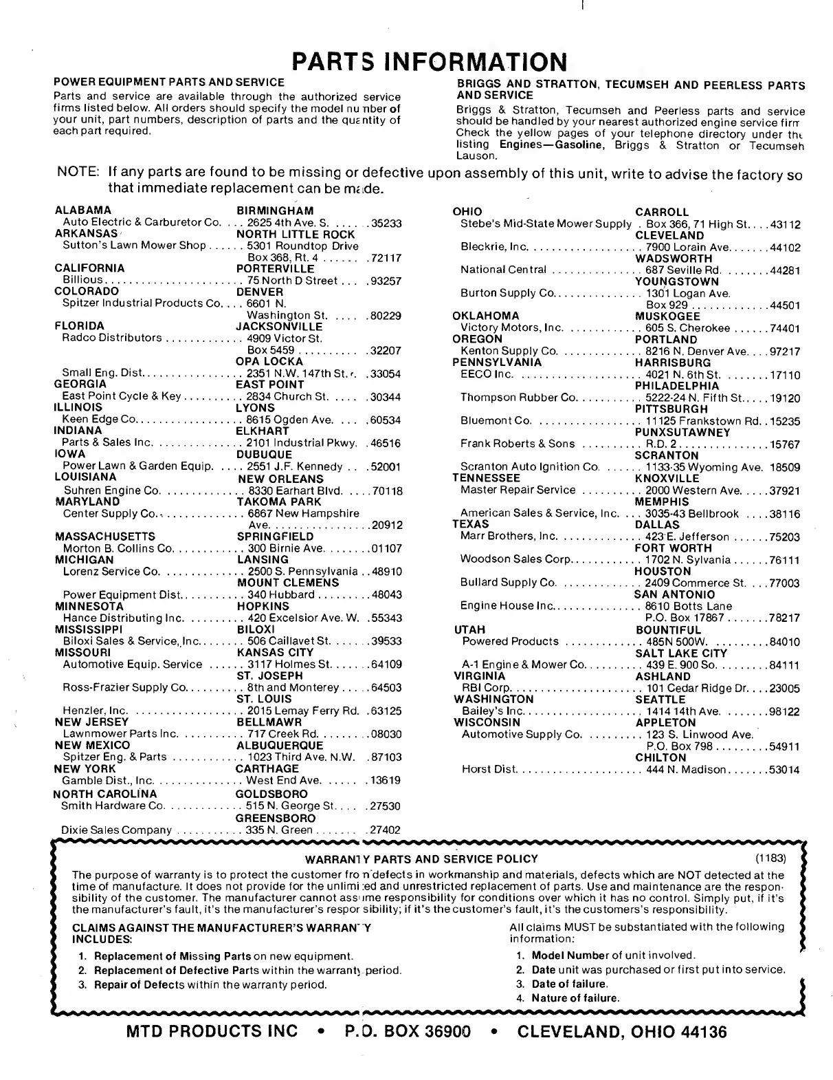 MTD 144-810-000 - Parts Information