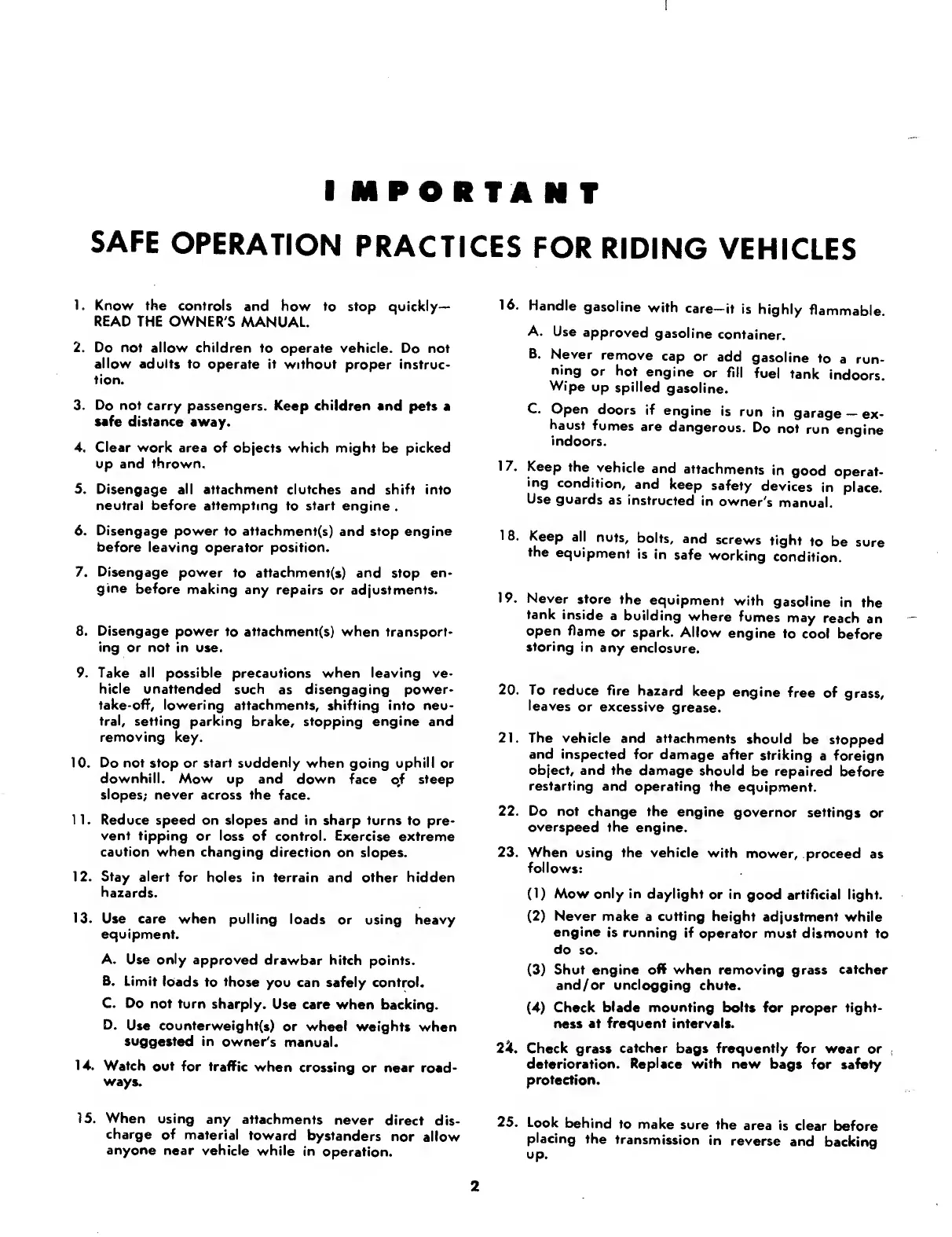 MTD 145-660A - SAFE OPERATION PRACTICES FOR RIDING VEHICLES