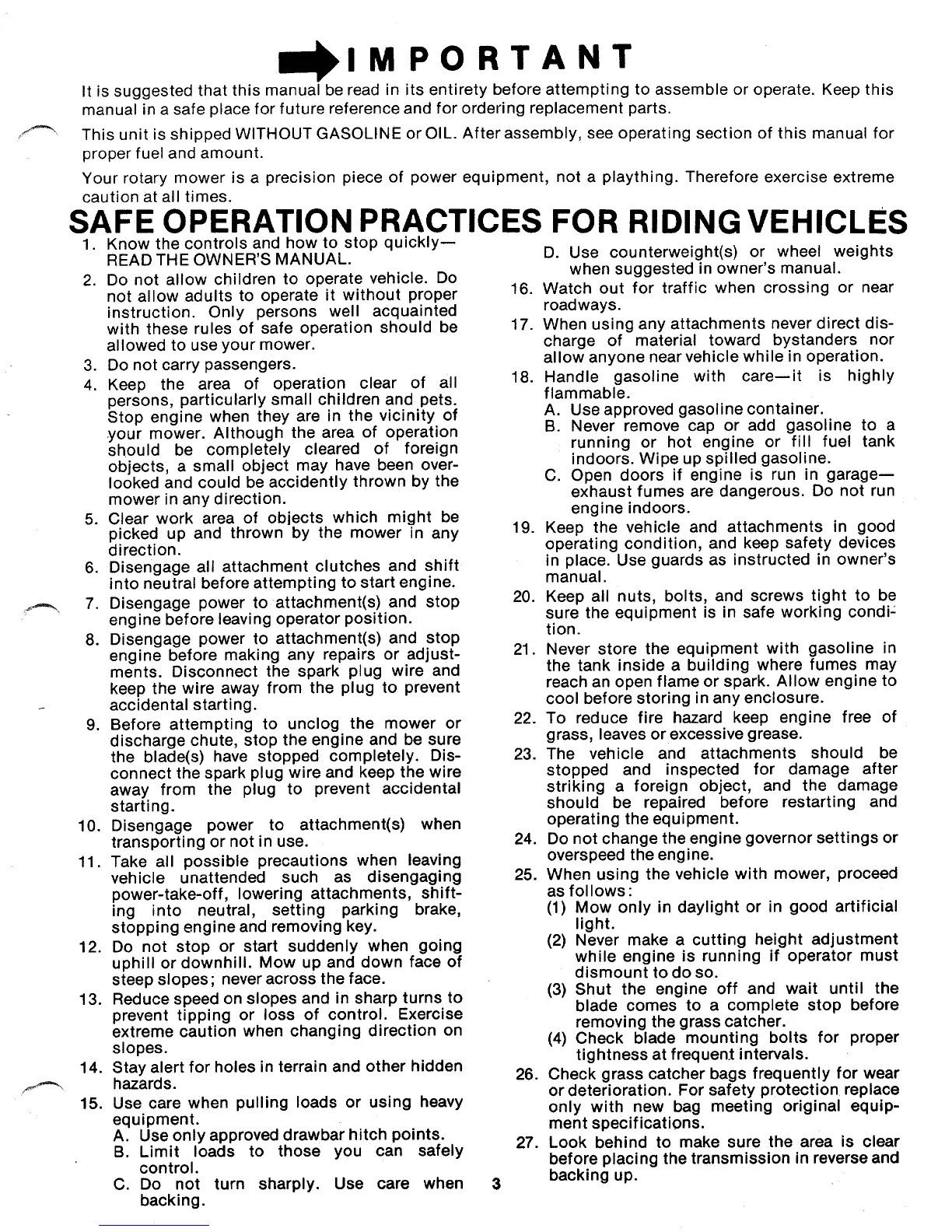 MTD 148-916A - SAFETY RULES; SAFE OPERATION PRACTICES