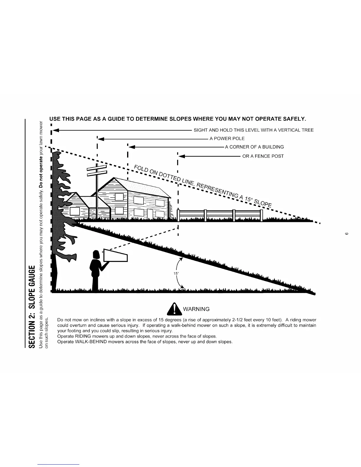 USE THIS PAGE AS A GUIDE TO DETERMINE SLOPES WHERE YOU MAY NOT OPERATE SAFELY.