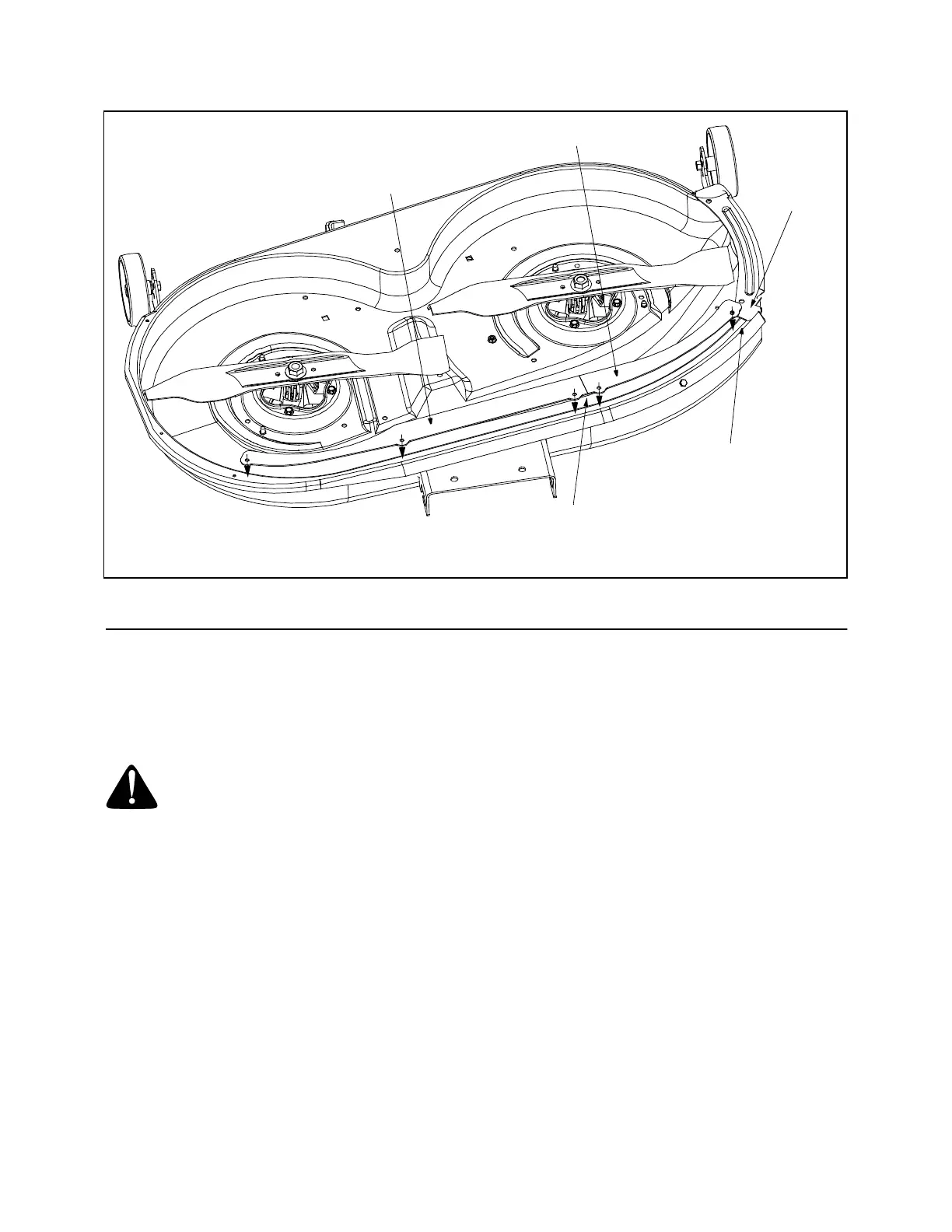 Line up the deck skirts evenly along the edge of the cutting deck’s front lip.