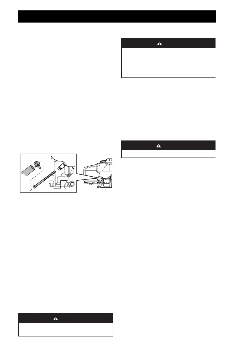 engine. Clean finger guard and around muffler. Clean with a